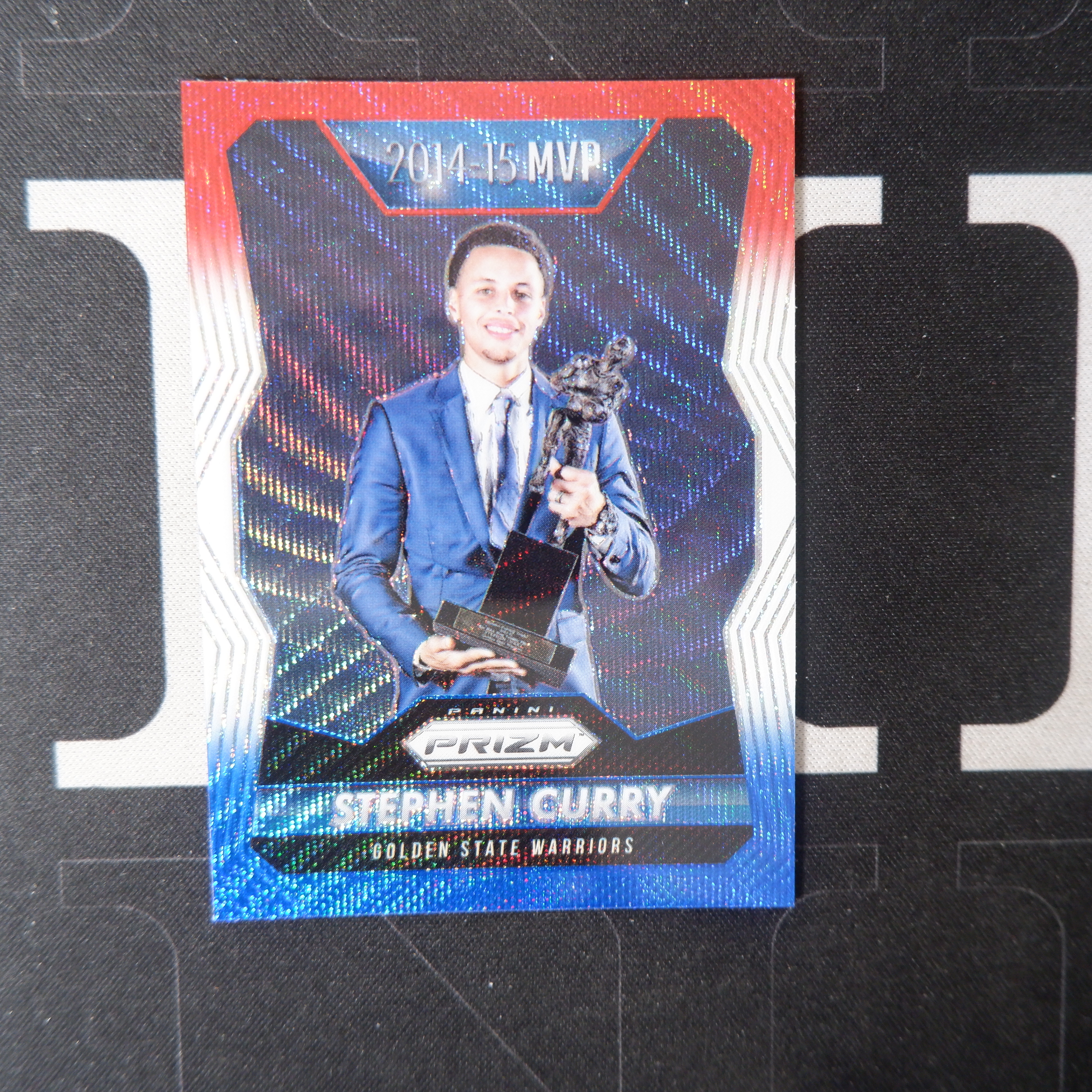 2015-16 Panini Prizm Stephen Curry 【小町拍卖】斯蒂芬 库里 勇士 MVP 奖杯 捧杯 三色折 红白蓝折 折射卡【melo】