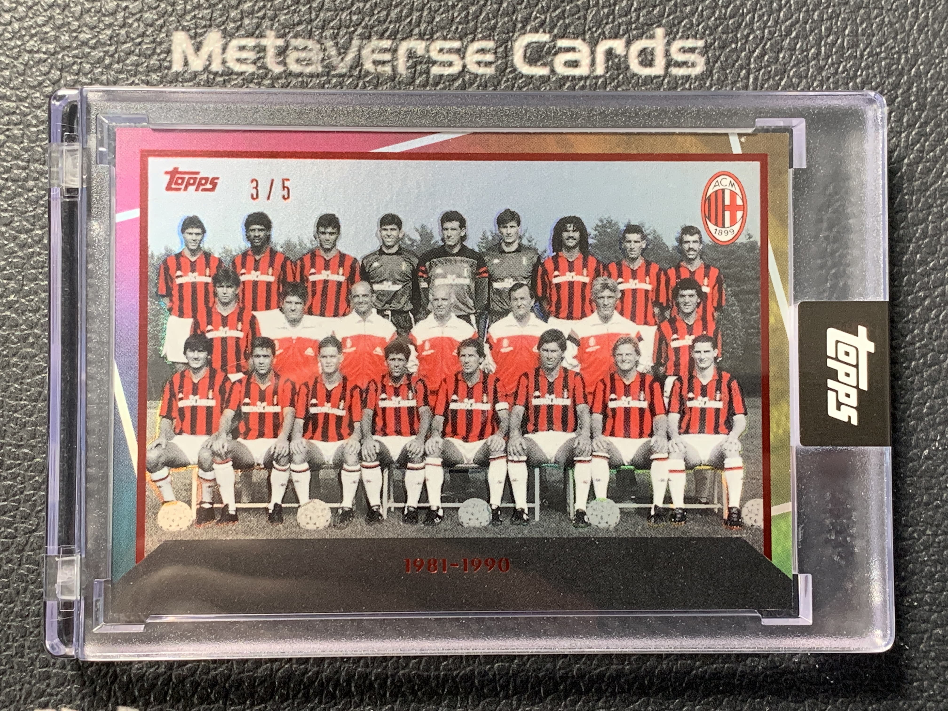 【元宇宙拍卖】J38-002:2024 Topps AC米兰 125周年队盒 1981-1990 合影特卡 超低编 3/5编 大比例 sp 原封砖 专收收藏必备