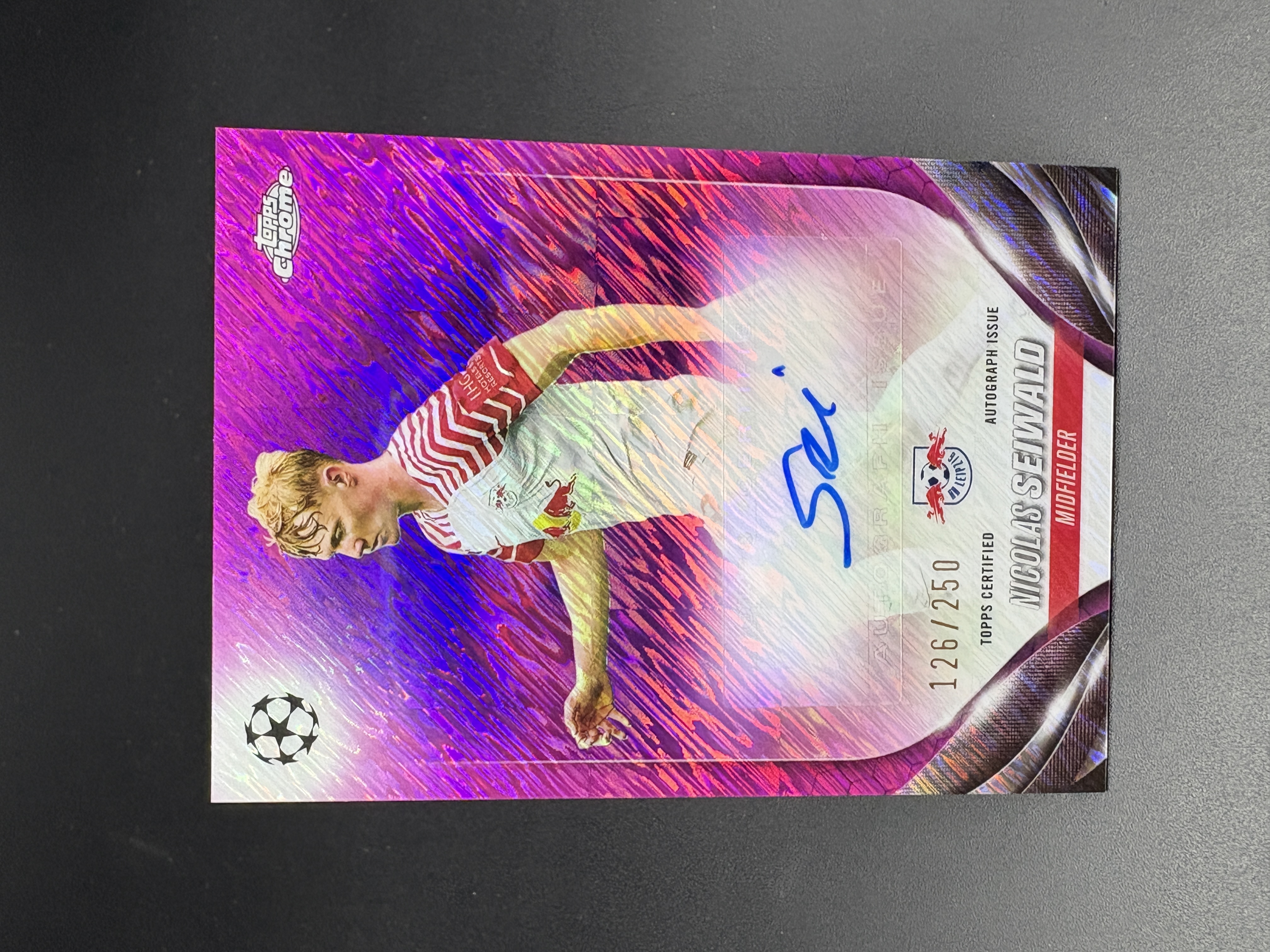 2024 Topps Chrome Nicolas Seiwald 【湖水蓝拍卖】塞瓦尔德 萨尔茨堡红牛 欧战TC 欧冠 粉微光折签 签字 250编 专收必备 烧烤