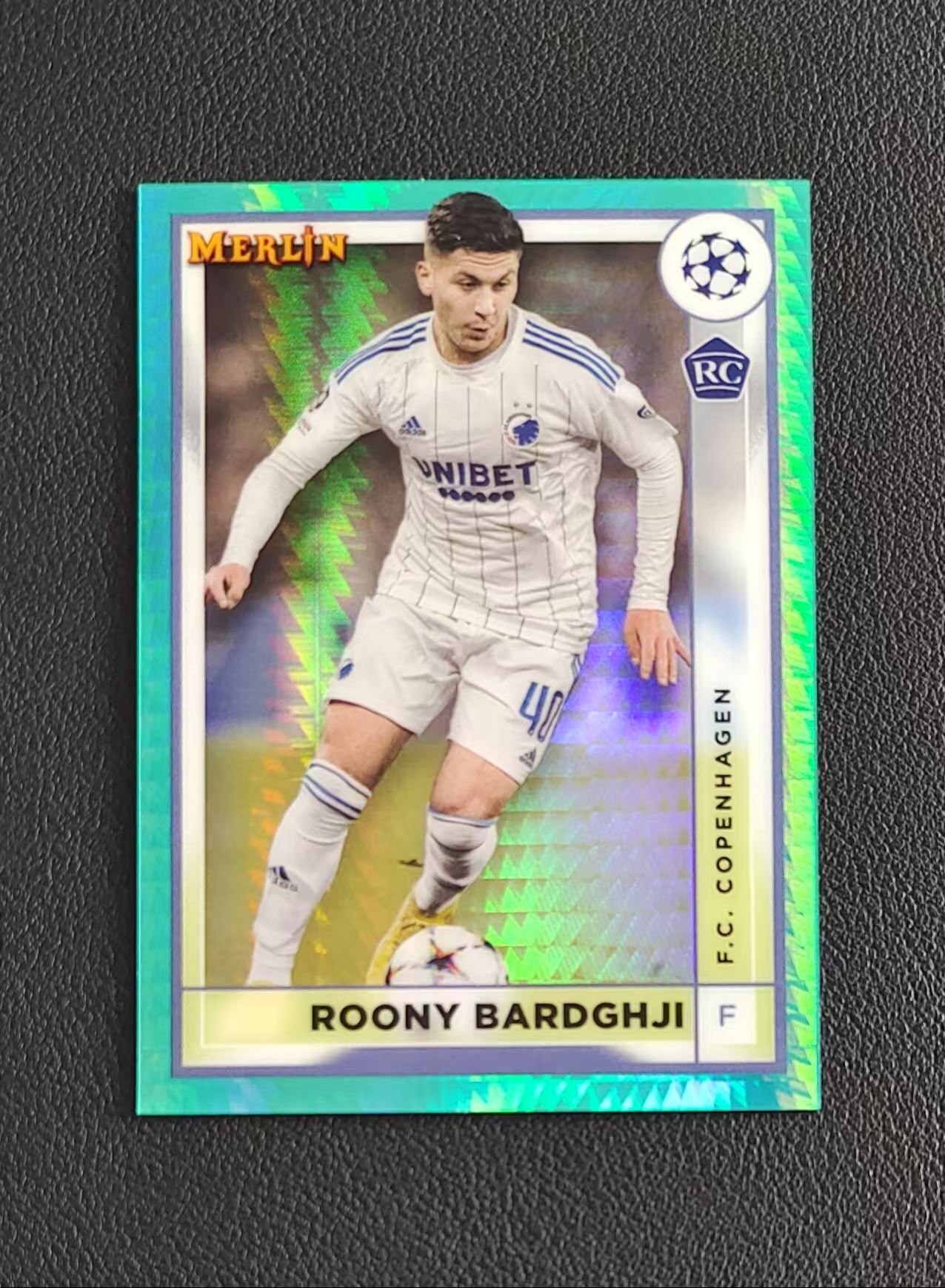2022-23 Topps Merlin chrome Roony Bardghji RC (钰钰代拍)欧冠 梅林 巴尔德吉 新秀 哥本哈根 青棱镜折 卡品如图 拍前看描述 OIU111