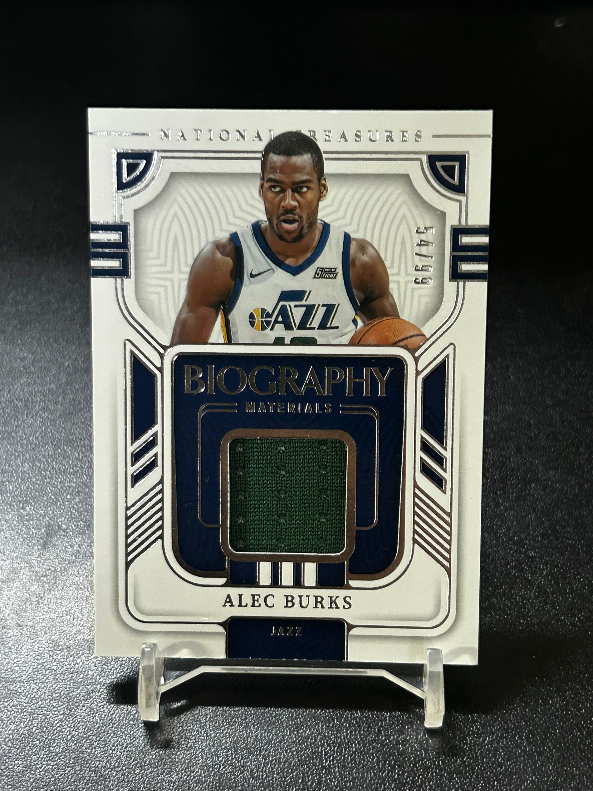 【浩行拍卖 截标预付82%】2022-23 panini national treasures alec burks 国宝 爵士 亚历克 伯克斯 54/99编 球衣 物料 瑕疵看图 专收必备「捕捉」0607G01張