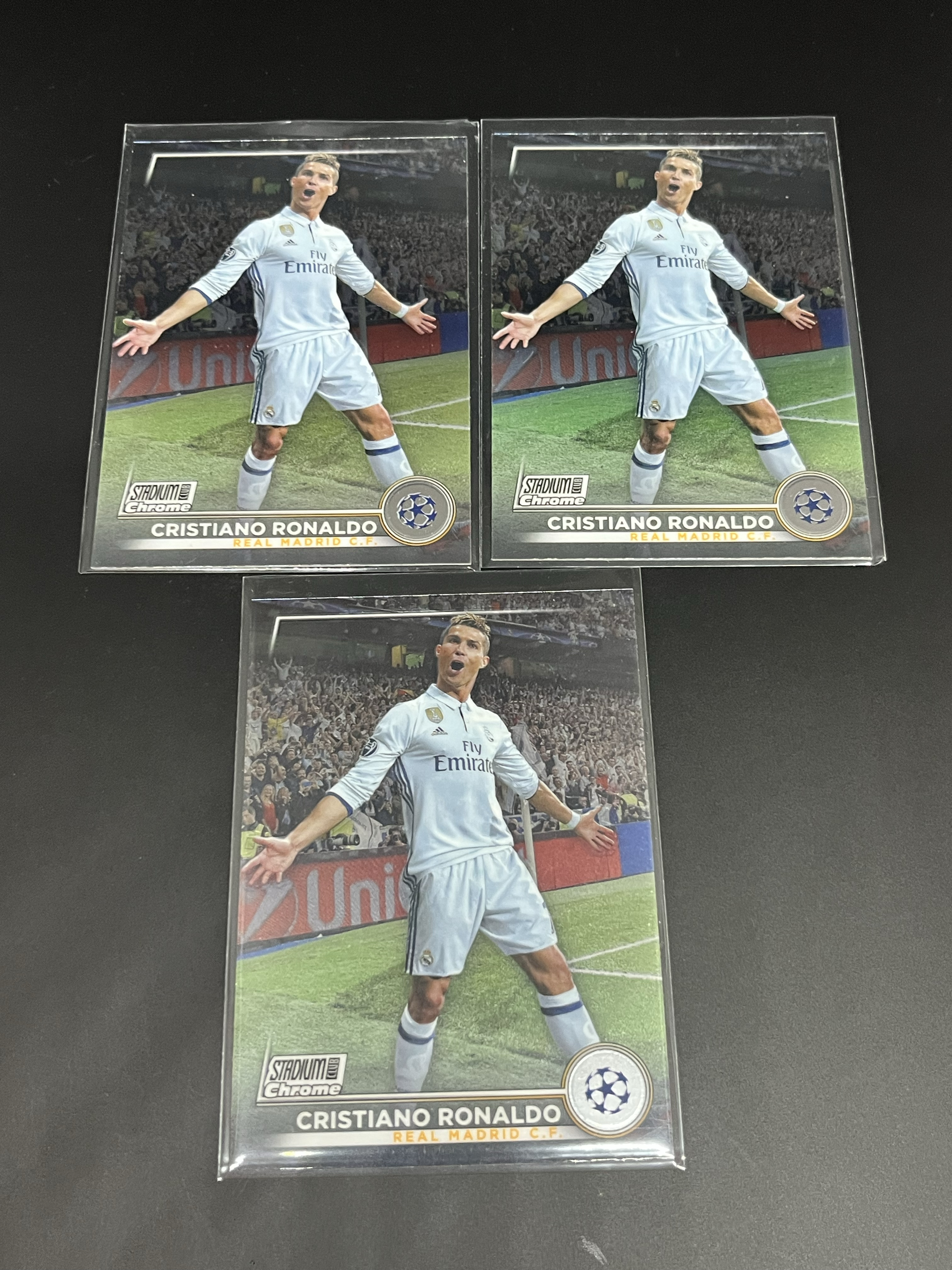 【蓉城拍卖】2023 Topps stadium club Cristiano Ronaldo C罗 皇家马德里 皇马 欧冠 曼联 尤文图斯 葡萄牙 竞技场 庆祝选图 超帅 三张打包 不保卡品 迪迦