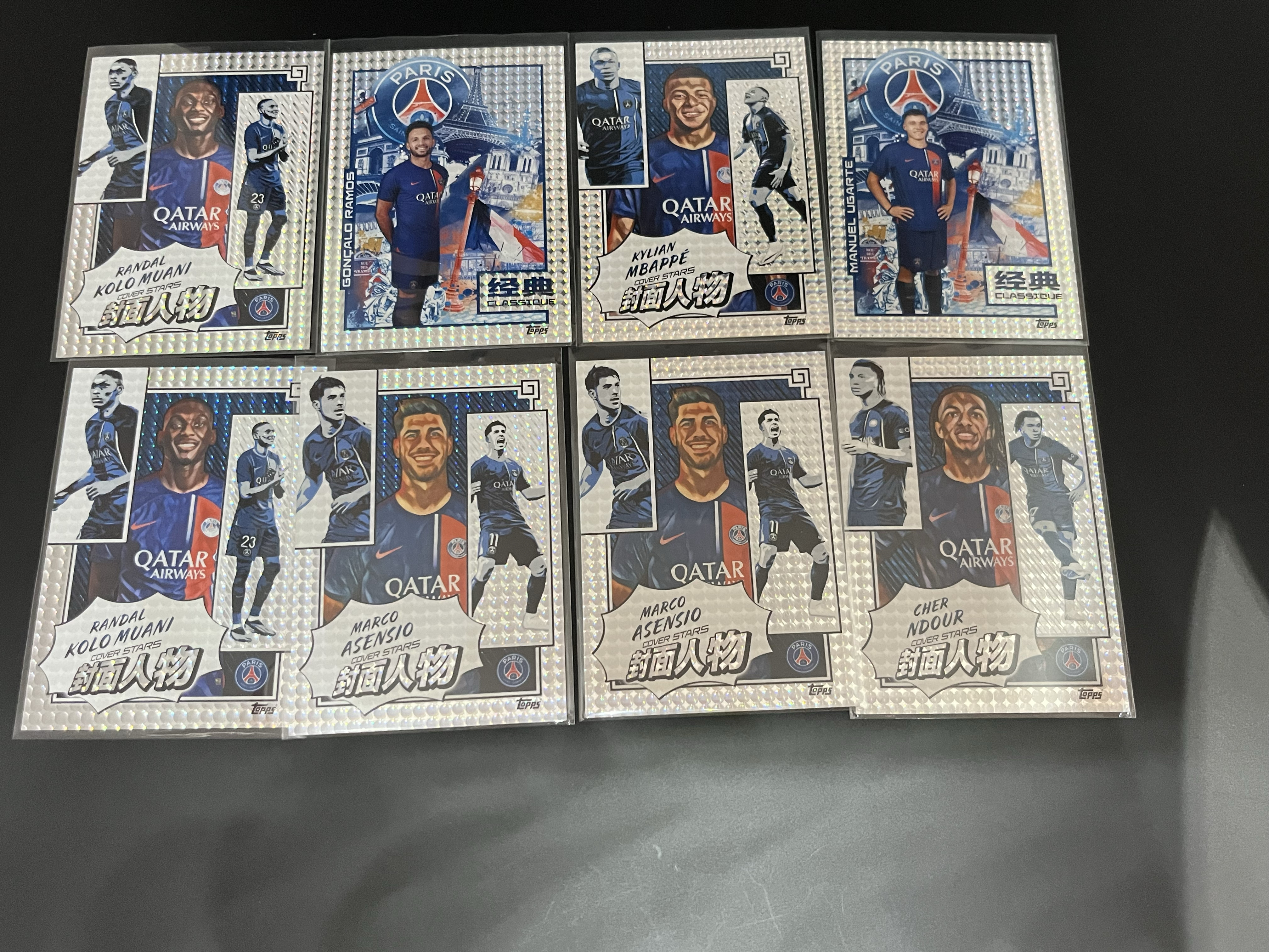 【蓉城拍卖】2024 Topps 大巴黎队盒 姆巴佩 拉莫斯 穆阿尼 乌加特 阿森西奥 等 银折 银马赛克折 折射 漫画 英雄 封面人物特卡 8张打包 欧冠冠军 迪迦