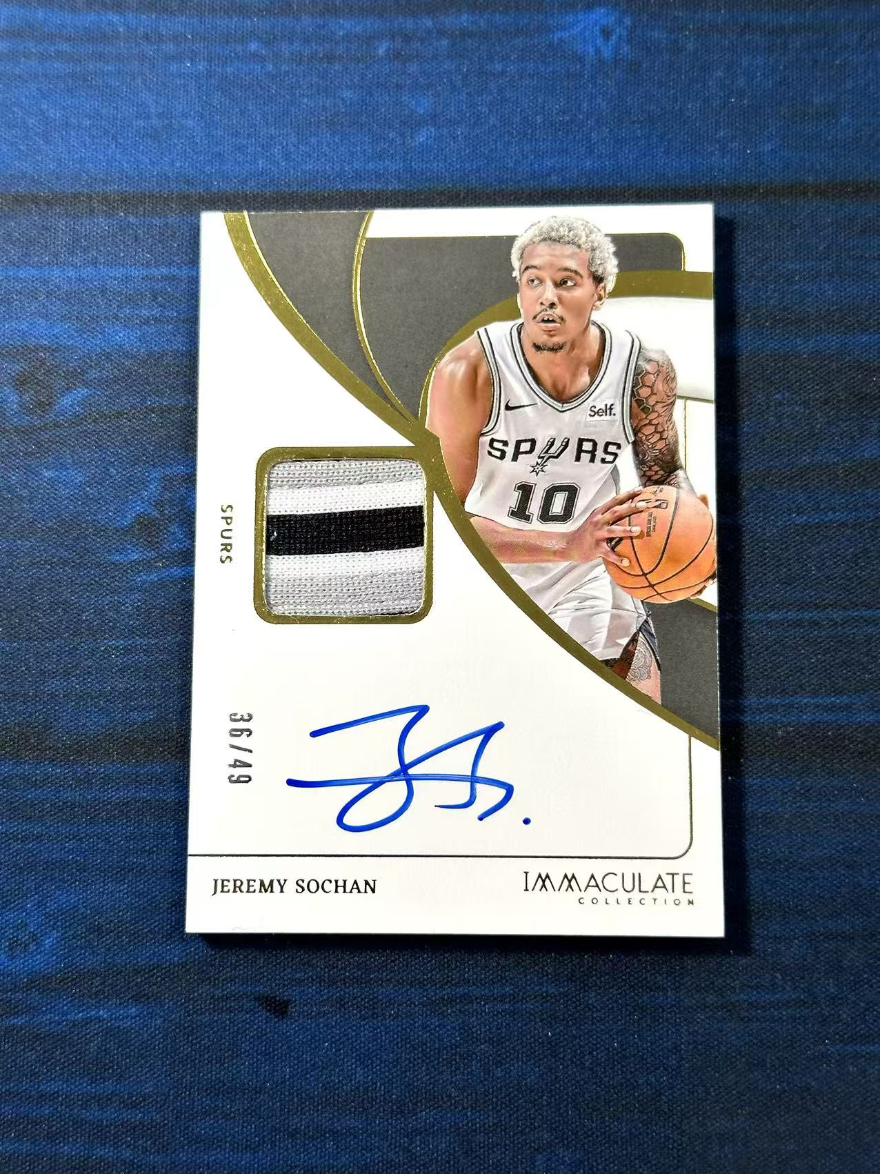 2023-24 Panini Immaculate Jeremy Sochan 【科爱咪咪 马刺 杰里米 索汉 现代罗德曼 36/49编 pa 球衣实物物料 签字 卡签 瑕疵如图