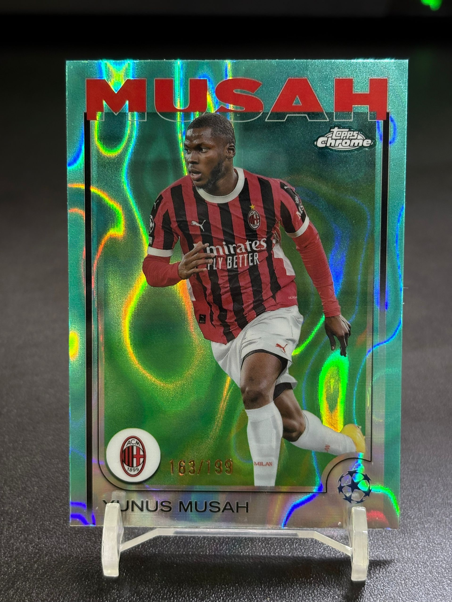 【浩行拍卖 截标预付82%】2025 topps chrome yunus musah 欧冠 AC米兰 尤纳斯 穆萨 青熔岩折 折射 163/199编 瑕疵看图 专收必备「以菱」0607G03鍾