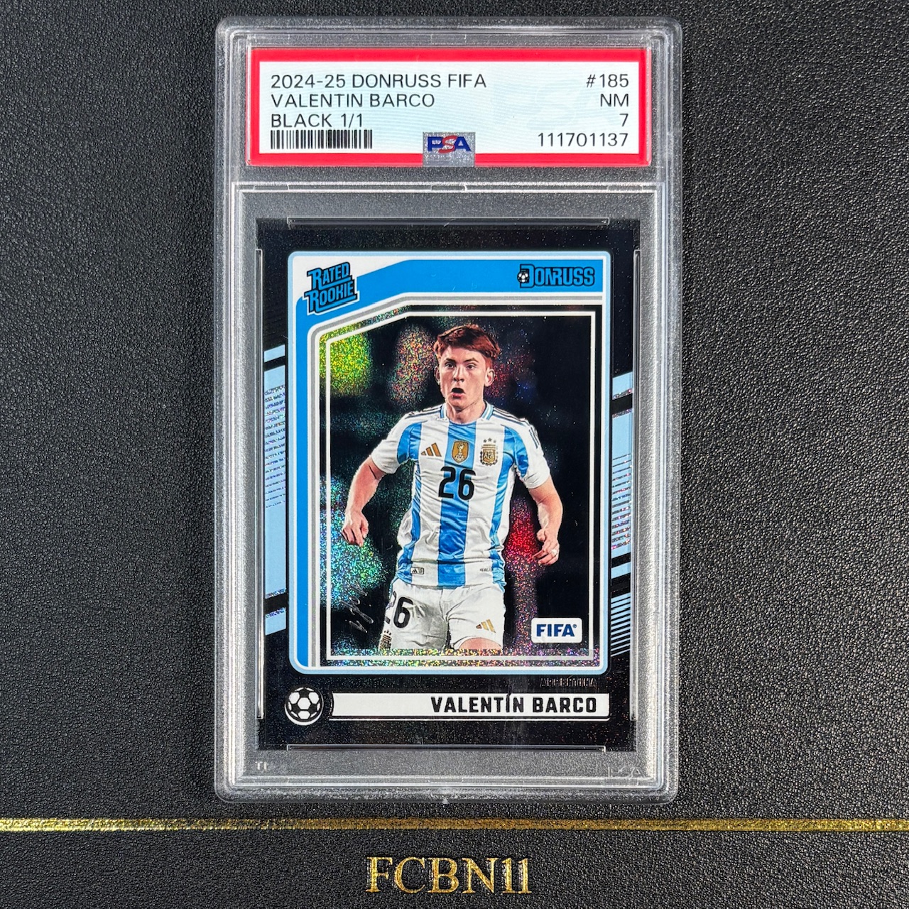 【FCB拍卖】2024-25 PANINI DONRUSS BARCO 巴尔科 新秀 RC 一编 1/1 正黑折 PSA7分 阿根廷 博卡青年 潜力新星 杜蕾斯 ONE OF ONE{在斯87}FCBN11