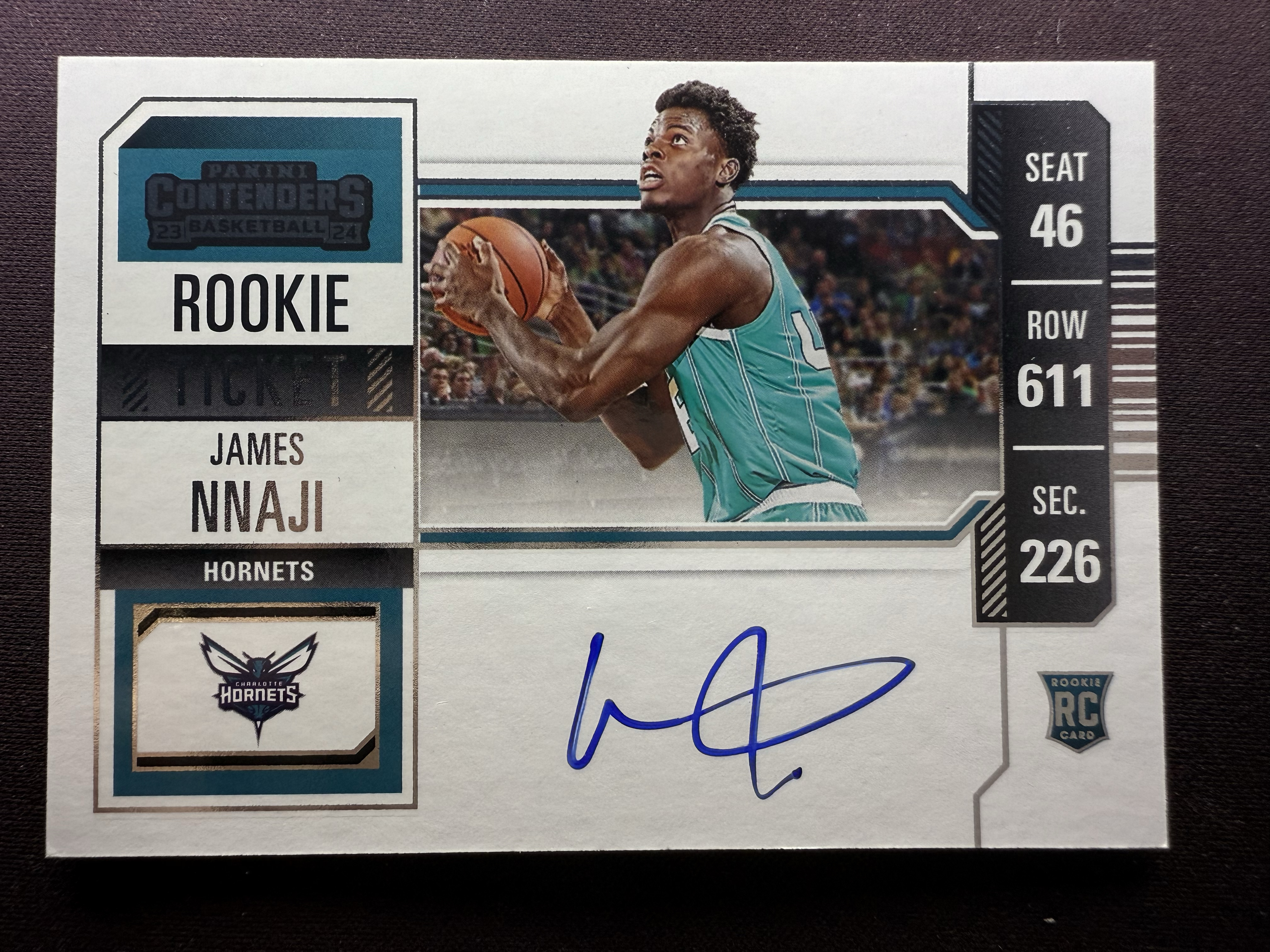 【小井代拍】2023-24 Panini Contenders James Nnaji RC 詹姆斯 纳吉 新秀 球票 签字 卡签 夏洛特黄蜂 卡品如图 辞安