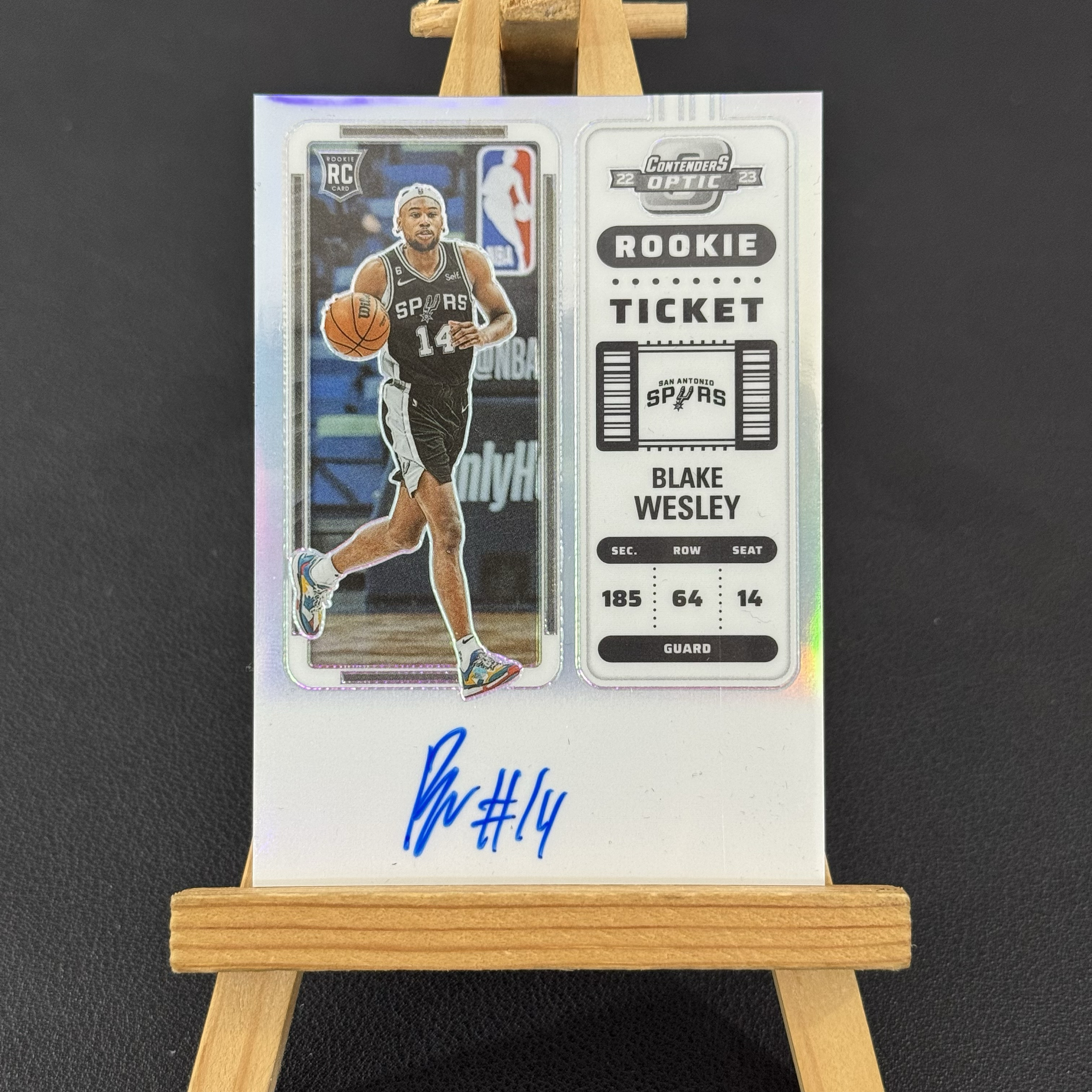 2022-23 Panini Contenders Optic 球票op 马刺 Blake Wesley布莱克 韦斯利 RC新秀 卡签签字 背号签 银折折射 细节如图 饕餮