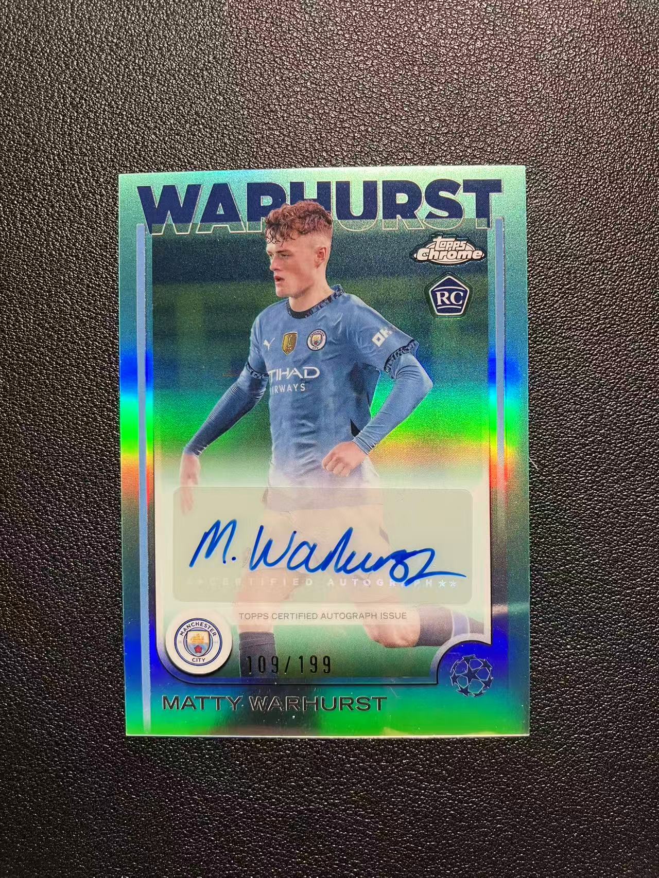 2025 Topps Chrome Matty Warhurst RC 欧冠TC系列 马蒂-沃赫斯特 109/199编 青折签 签字 RC新秀 曼城 曼彻斯特城 卡品如图 Z777