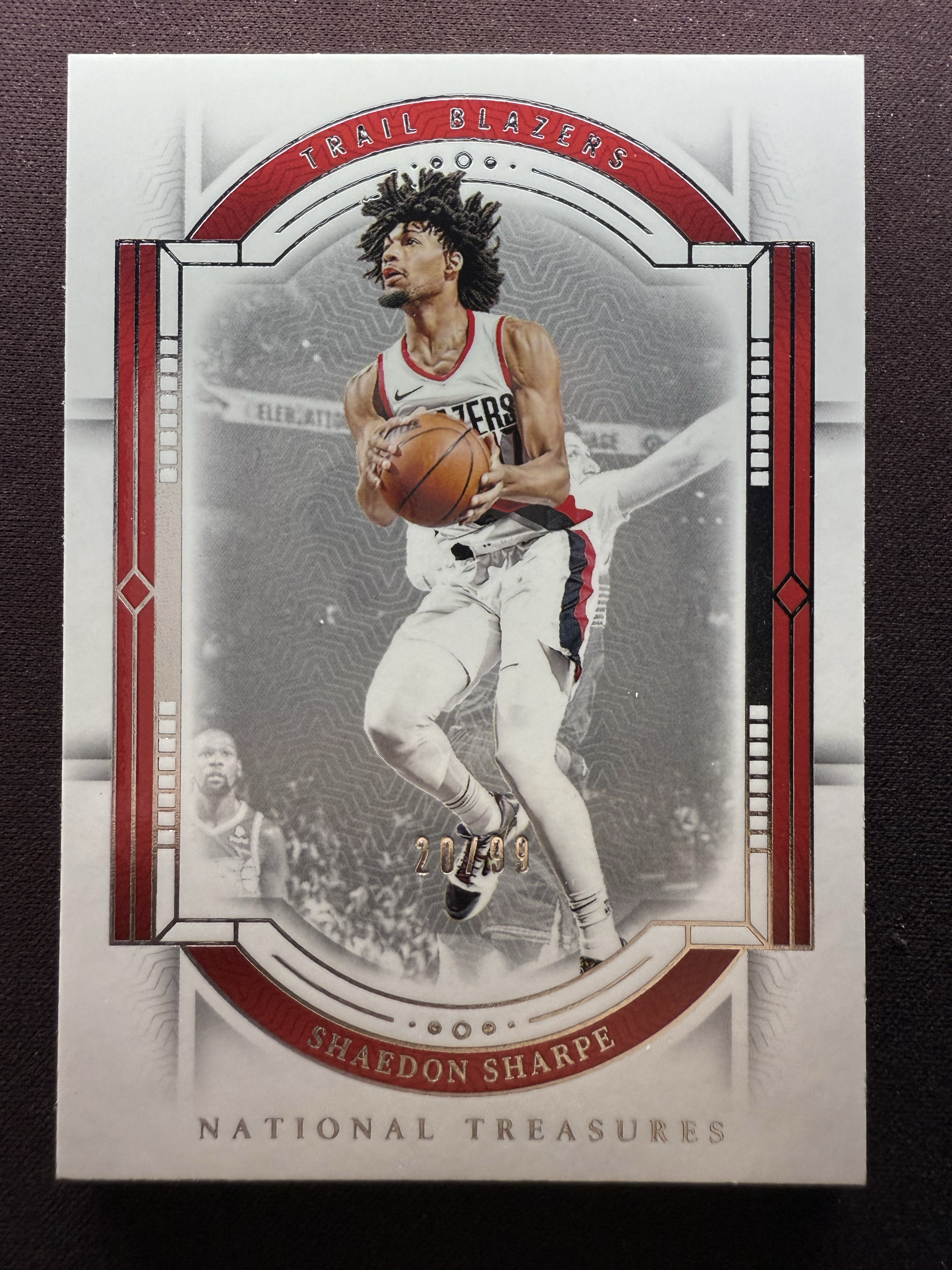 【小井代拍】2023-24 Panini National Treasures Shaedon Sharpe 开拓者 谢登 夏普 /99编 银平行 Base 国宝 卡品如图 幸运