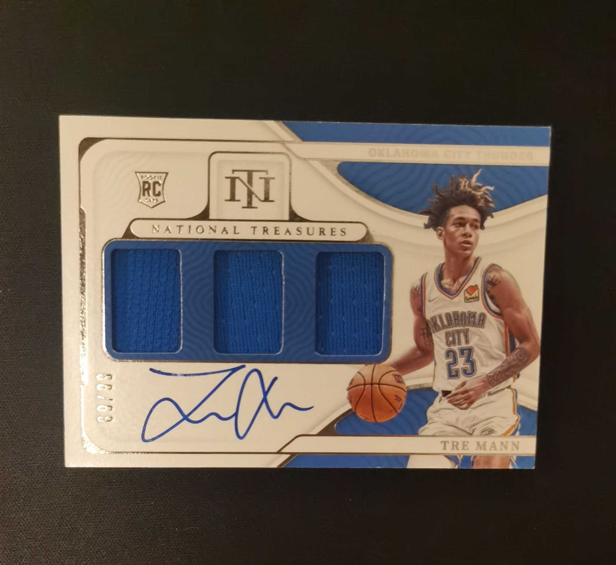 2021-22 Panini National Treasures Tre Mann RC 国宝 新秀RC 99编 三窗RJA 球衣物料 卡签 签字 雷霆新秀 特雷 曼 特雷 曼恩 69/99编 吹曼