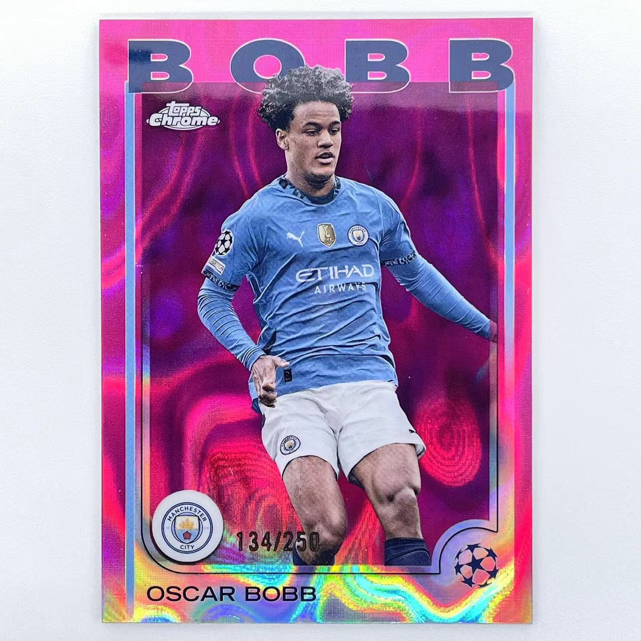 2024-25 Topps Chrome Oscar Bobb 欧冠TC 挪威 曼城 奥斯卡 鲍勃 250编 粉熔岩折 哈兰德福登德布劳内马尔穆什赖因德斯萨维尼奥罗德里格拉利什奥赖利厄德高努萨队友 F
