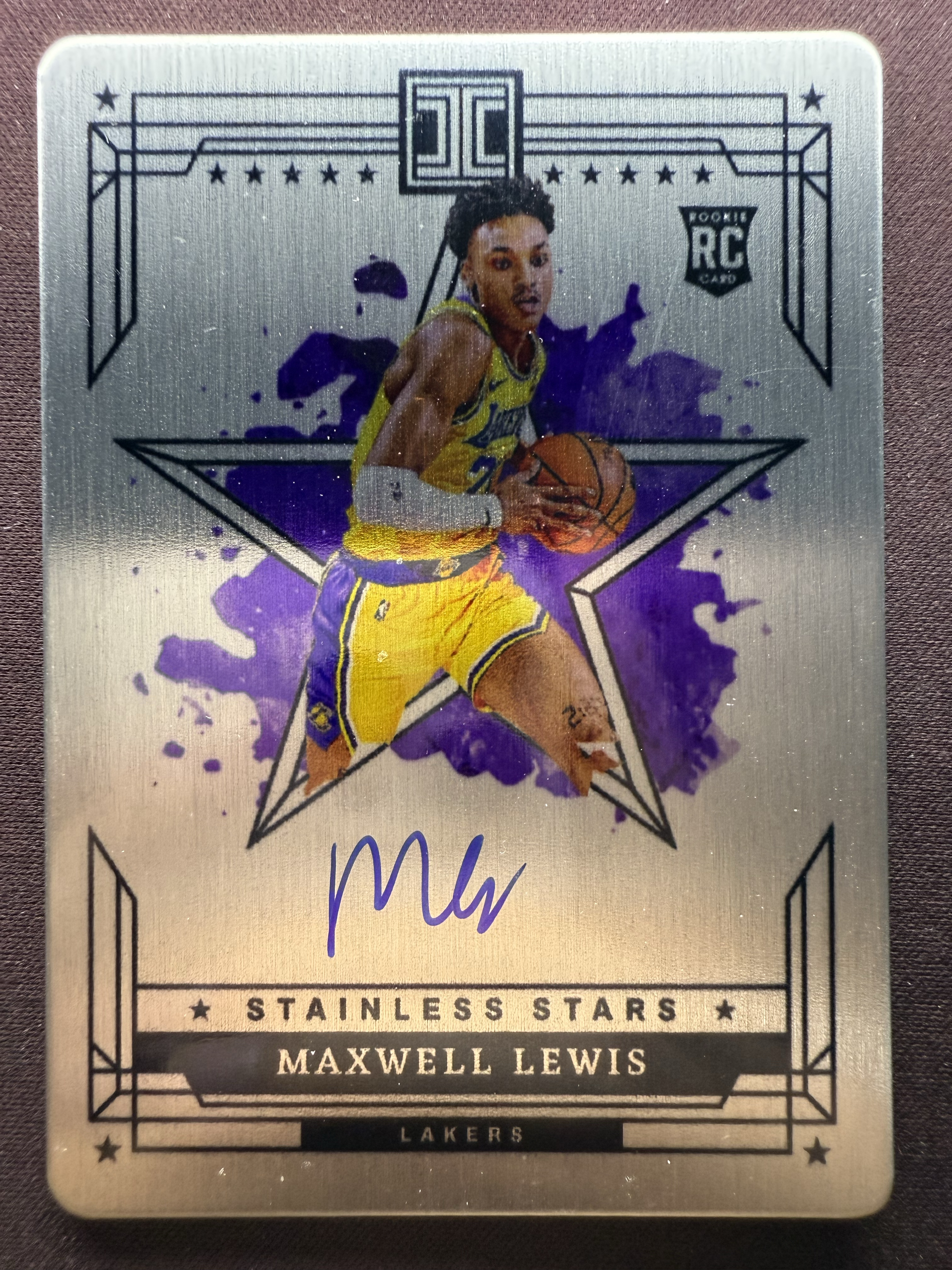 【小井代拍】2023-24 Panini Impeccable Maxwell Lewis 小真金 马克思韦尔 刘易斯 /99编 RC 新秀 铁板 卡签 签字 湖人 卡品如图 seven