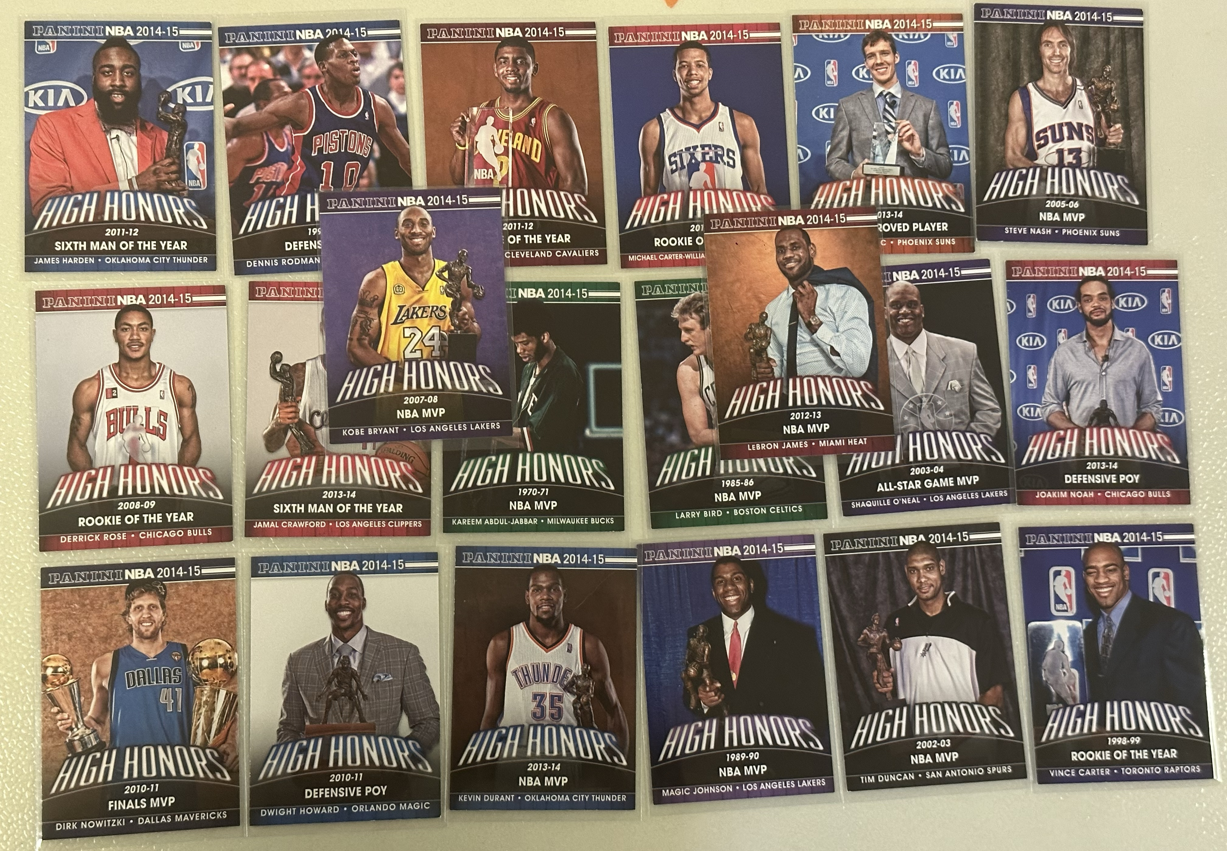 2014-15 Panini S.p.A Kobe Bryant LeBron James 捧杯特卡 全套20张lot 科比布莱恩特 勒布朗詹姆斯 杜兰特 哈登 罗斯 欧文等 荣誉特卡 MVP 绝版卡
