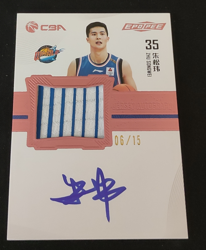2022 中体卡业 CBA EPOPEE 史诗系列 朱松玮 CBA 四川金强 朱松玮 6/15编 竖版 球衣实物签字 卡签 厚卡边角瑕疵 品控勿拍
