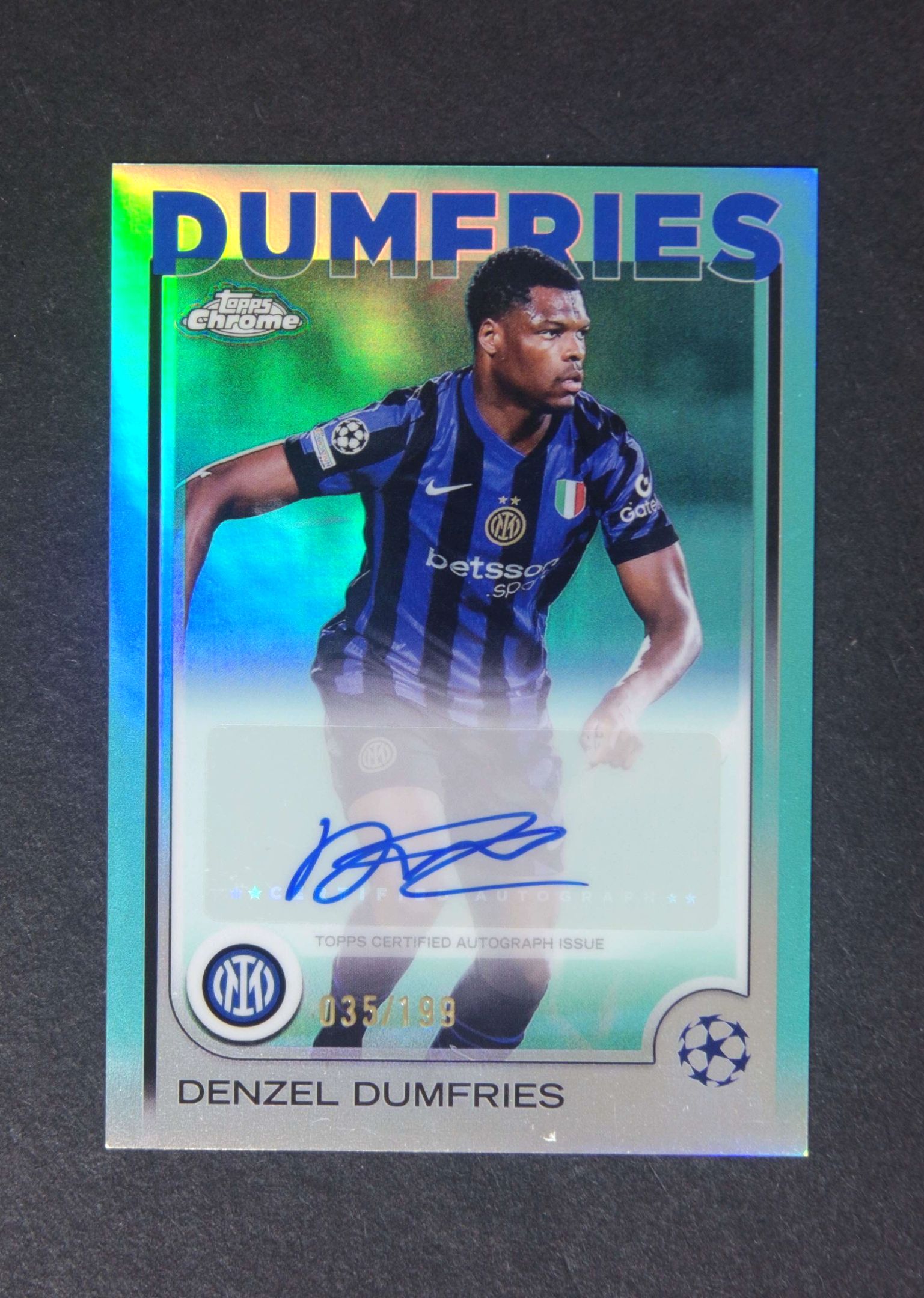 2024-25 Topps Chrome Denzel Dumfries LU酱专业代卖 (F先生)欧冠 TC 国际米兰 登泽尔 邓弗里斯 水蓝折 199编 签字 完美墨迹 卡品如图 收藏佳品