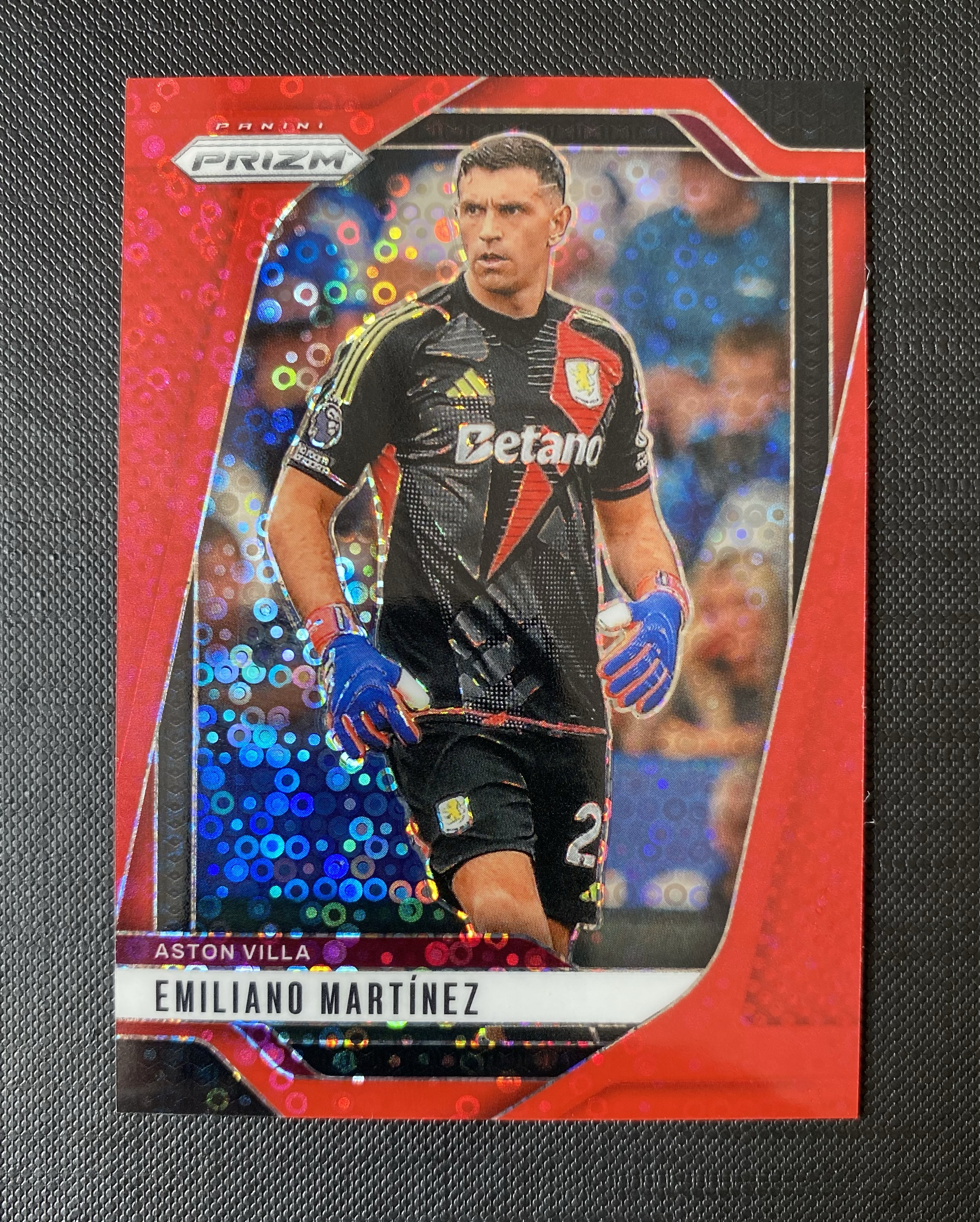 2024-25 Panini Prizm Emiliano Martínez 英超Prizm 阿斯顿维拉 阿根廷 埃米利亚诺马丁内斯 大马丁 红泡泡折射 01/49编 首编 实卡好看 微瑕如图【冠军】