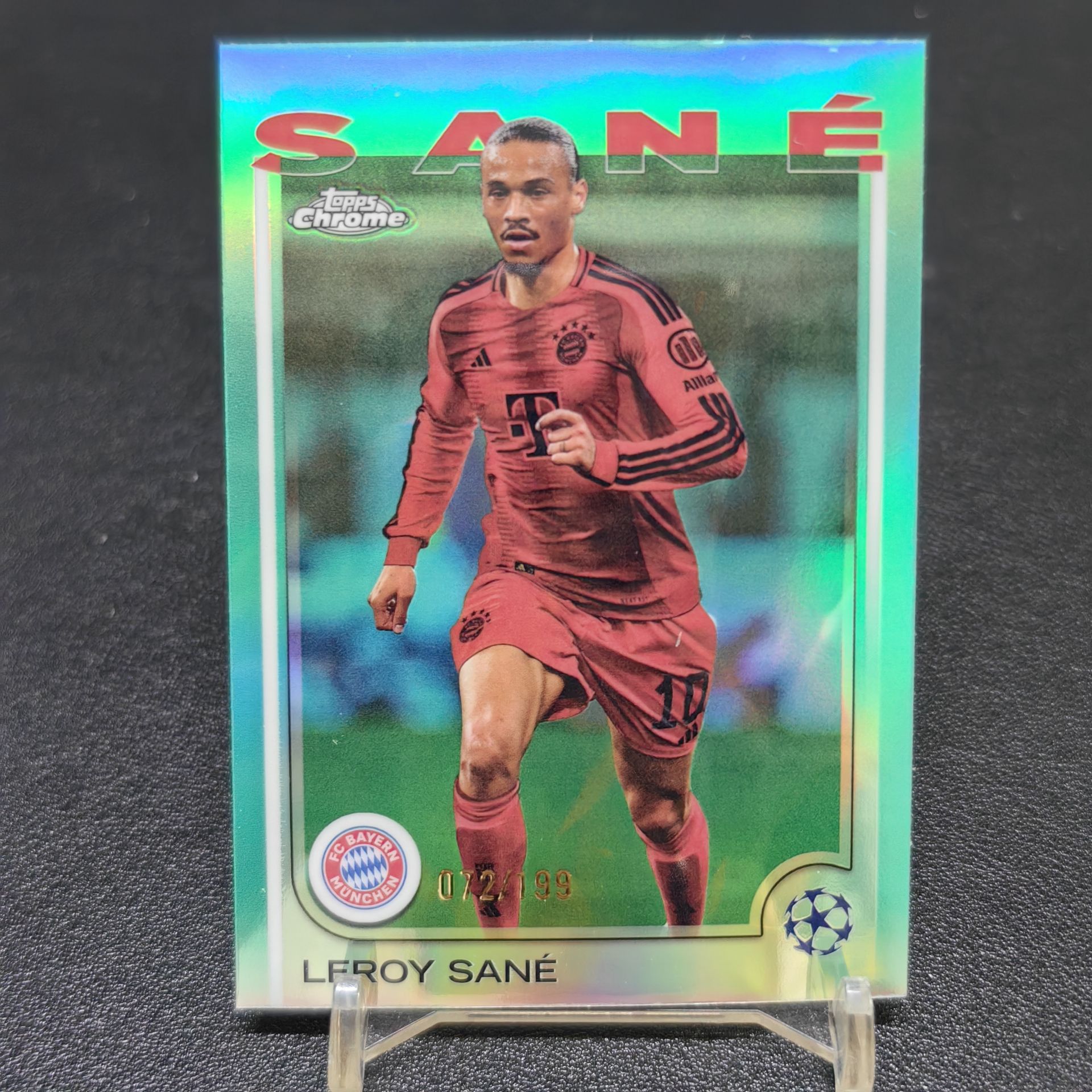 【浩行拍卖 截标预付82%】2025 topps Chrome Leroy Sane 欧冠 拜仁 勒鲁瓦 萨内 青折 折射 72/199编 专收必备 瑕疵看图「云景」0608C01龘
