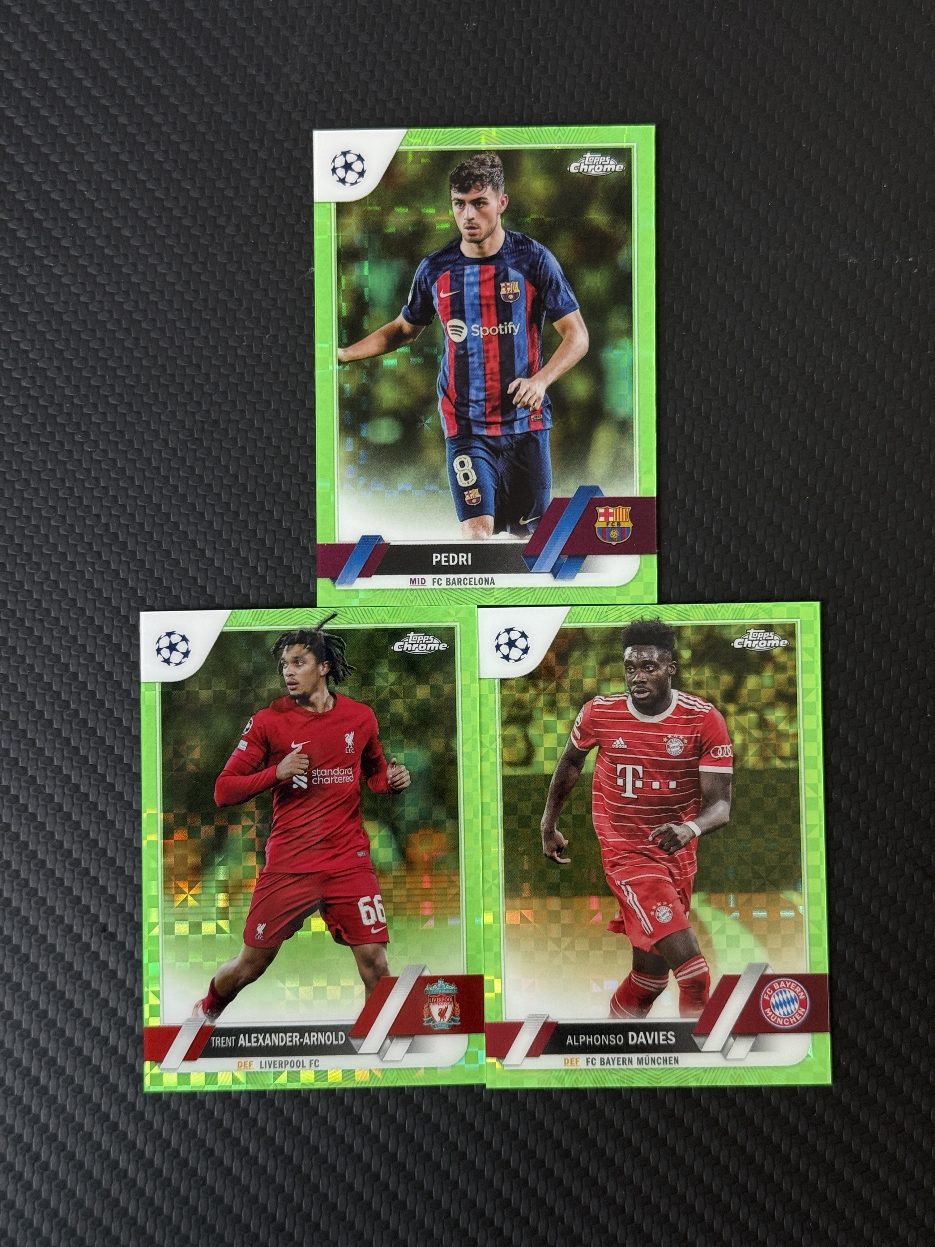 【包来拍卖】22-23topps chrome 欧冠tc 巴萨 佩德里 阿方索戴维斯 拜仁 西班牙 阿诺德 利物浦 皇马 绿棋盘折 绿折 折射 399编 卡品如图 霸气