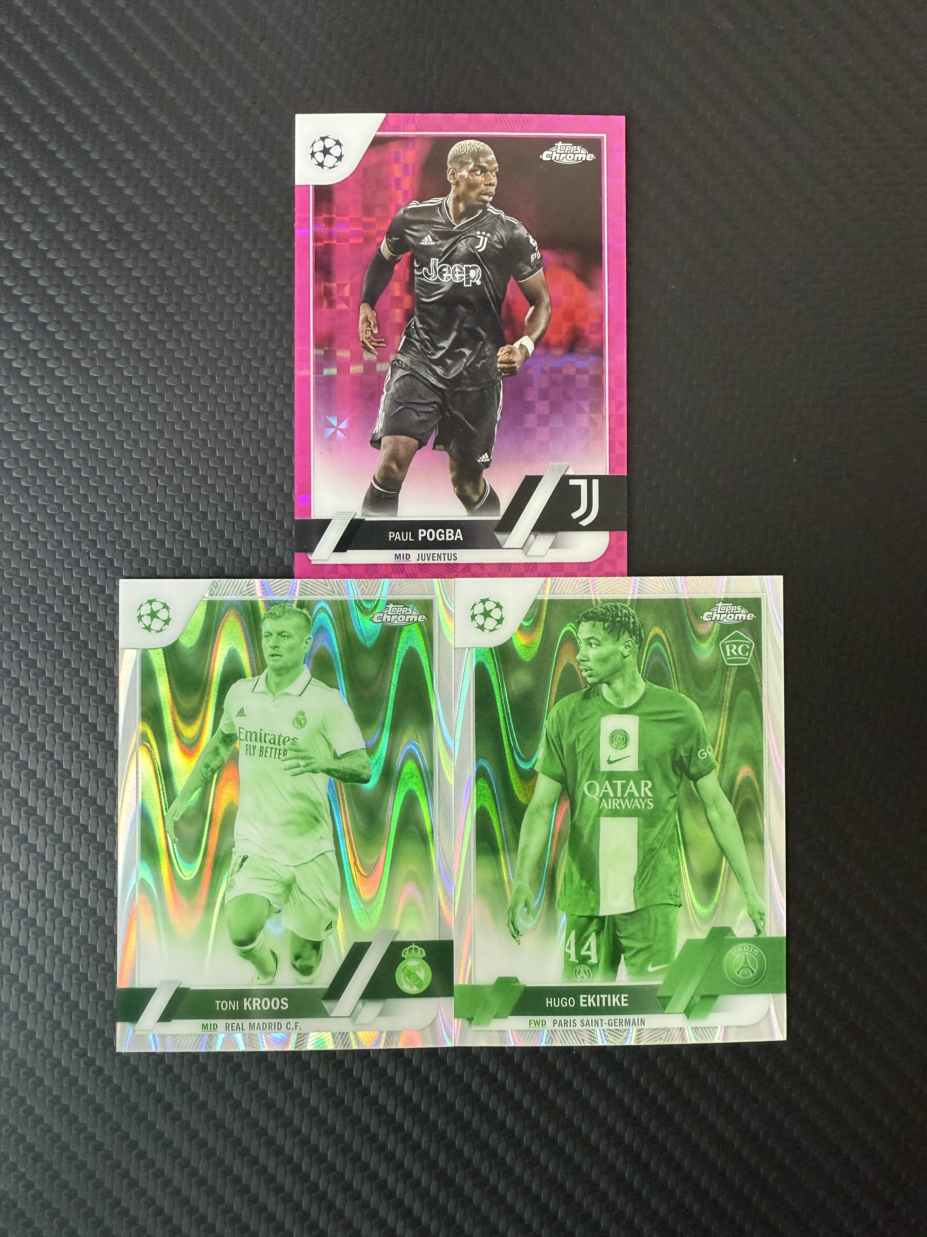 【包来拍卖】22-23topps chrome 欧冠tc 尤文图斯 博格巴 曼联 埃基蒂克 巴黎 托尼 克罗斯 皇马 德国 法国 黑白波纹折 粉棋盘折 225编 折射 250编 卡品如图 霸气11