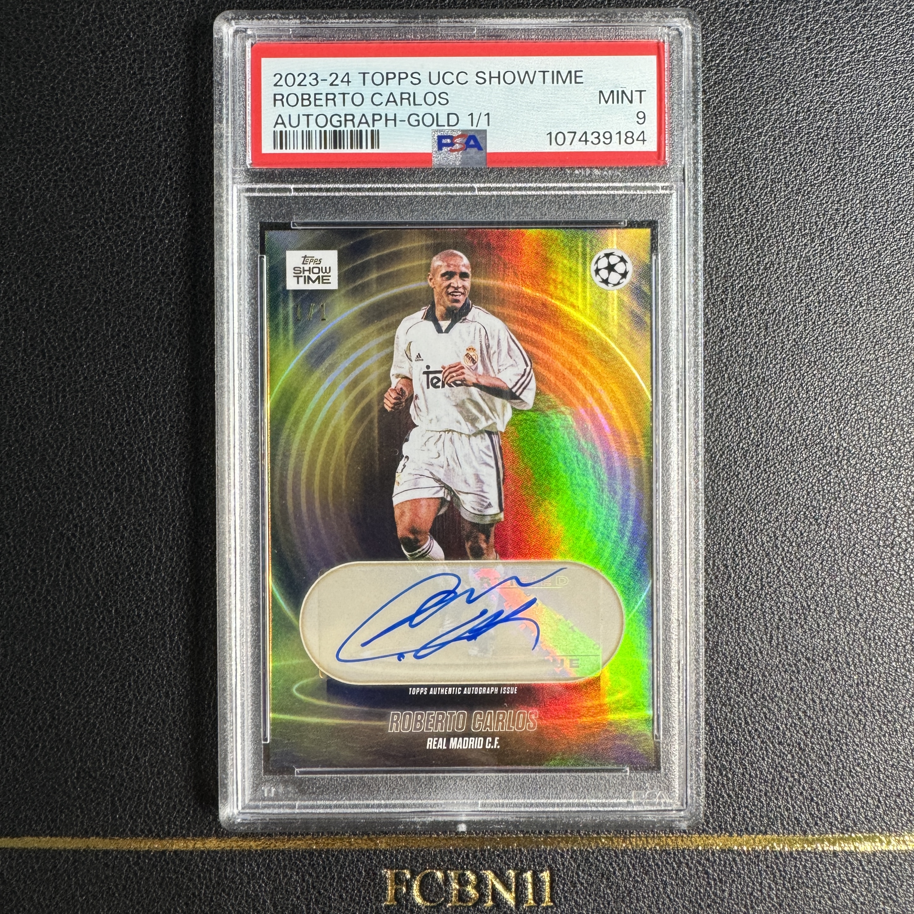 【FCB拍卖】2023-24 TOPPS UCC SHOWTIME ROBERTO CARLOS 罗伯特 卡洛斯 签字 一编 1/1 金折 PSA9分 巴西 皇马 皇家马德里 国际米兰 欧冠 展会盒 1编{luiser63}FCBN11