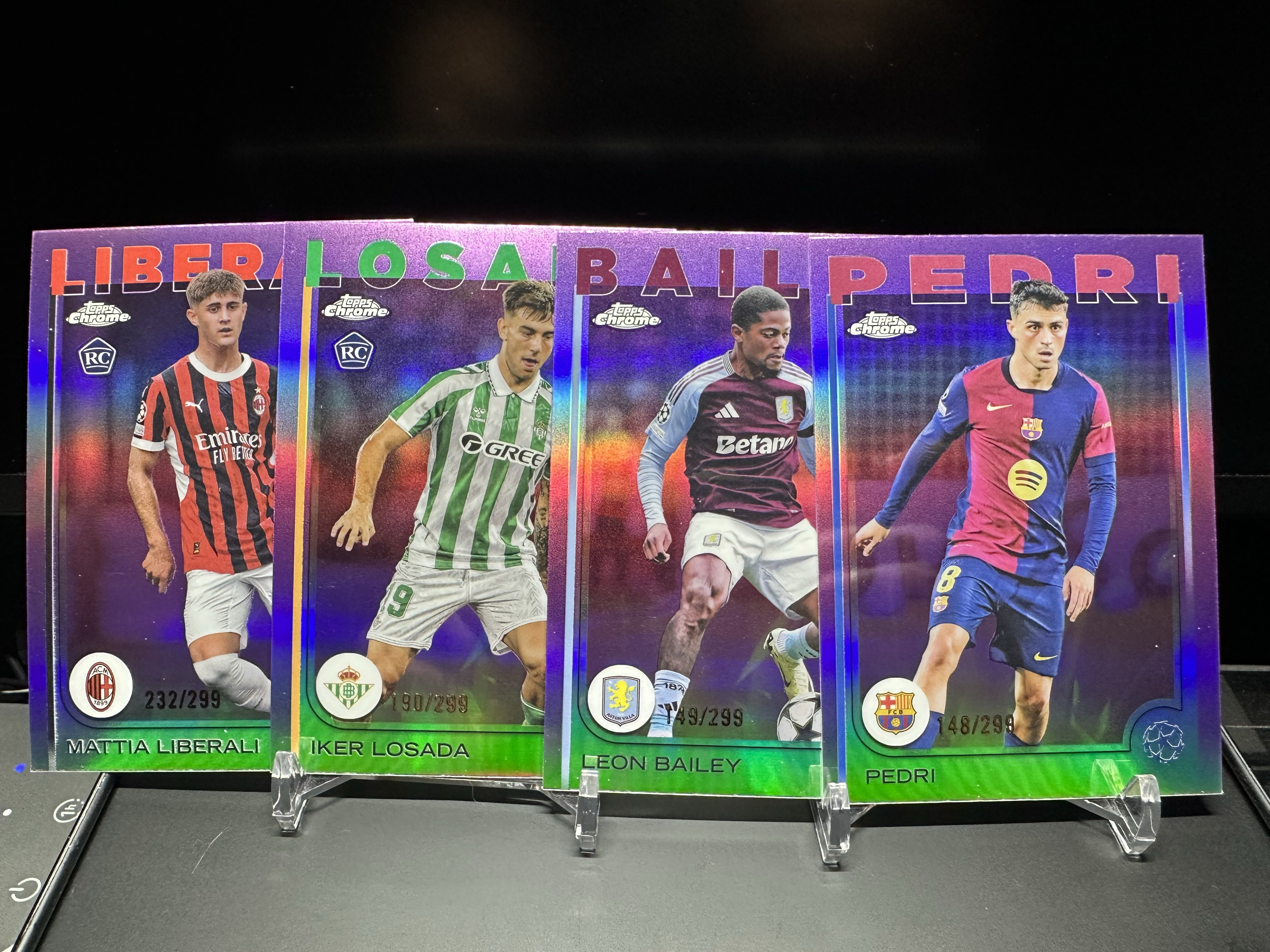 2025 Topps Chrome Pedri RC 佩德里带队4张299编粉折紫折打包 新秀Losada+Liberali、拜利 好秀未来可期身价飞涨 巴萨维拉贝蒂斯AC米兰欧冠欧联收藏凑套