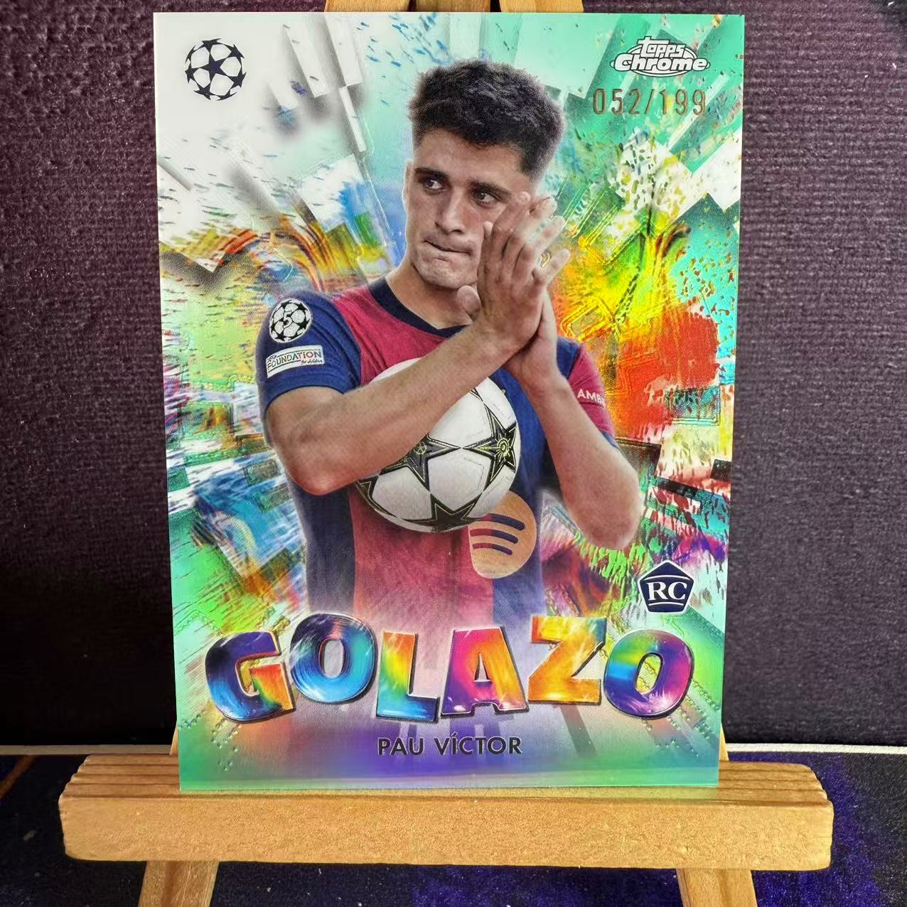2025 Topps Chrome PAU VICTOR RC 欧冠TC 巴塞罗那 巴萨 新秀RC 维克托 199编 青折 Golazo特卡 带编 折射 微瑕如图【拾艺拍卖】LEE
