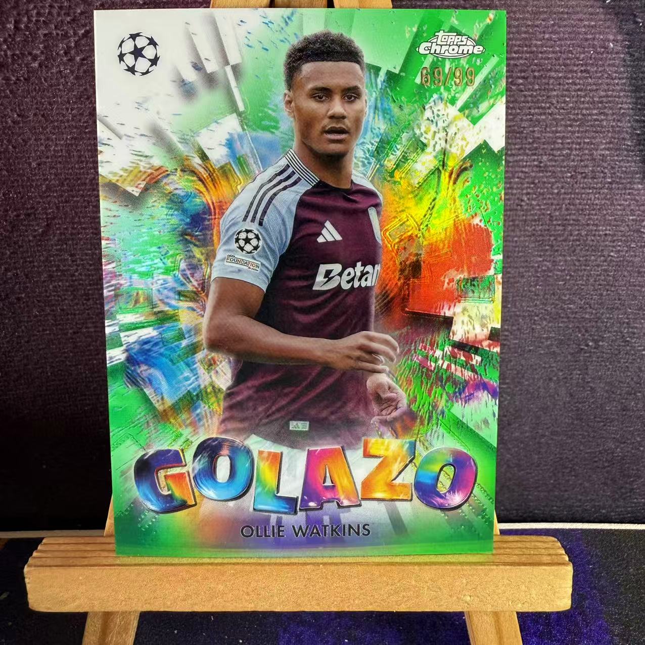 2025 Topps Chrome Ollie Watkins 欧冠 英格兰 阿斯顿维拉 沃特金斯 99编 绿折 Golazo特卡 带编 折射 微瑕如图【拾艺拍卖】LEE