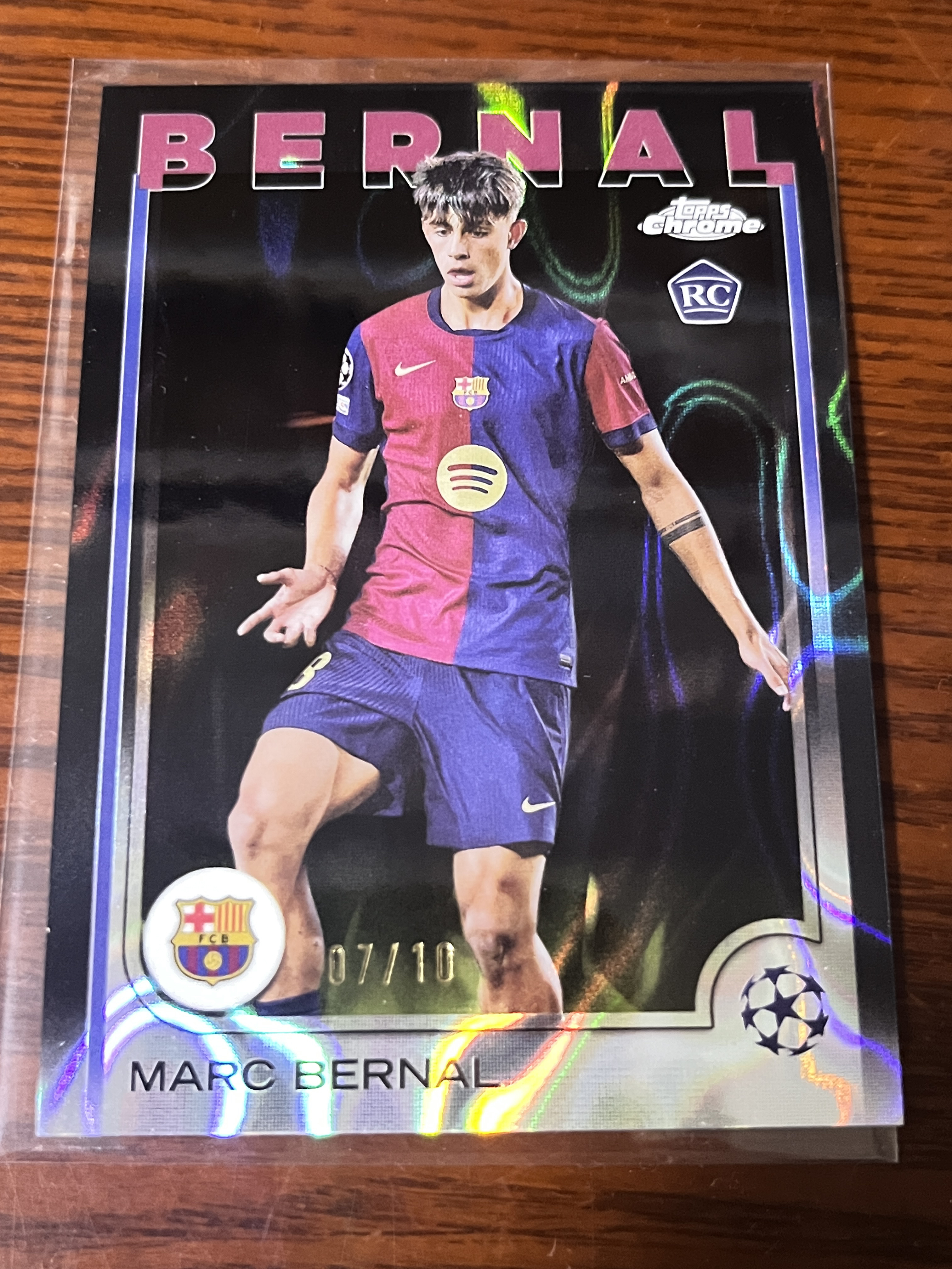 2025 Chrome Marc Bernal RC 欧冠 马尔科- 贝尔纳尔 10编 黑色折射 RC新秀 巴萨 西班牙 中场 青训天才 未来顶级中场接班人 如图轻微瑕疵印刷线需要灯光角度拍摄能看出
