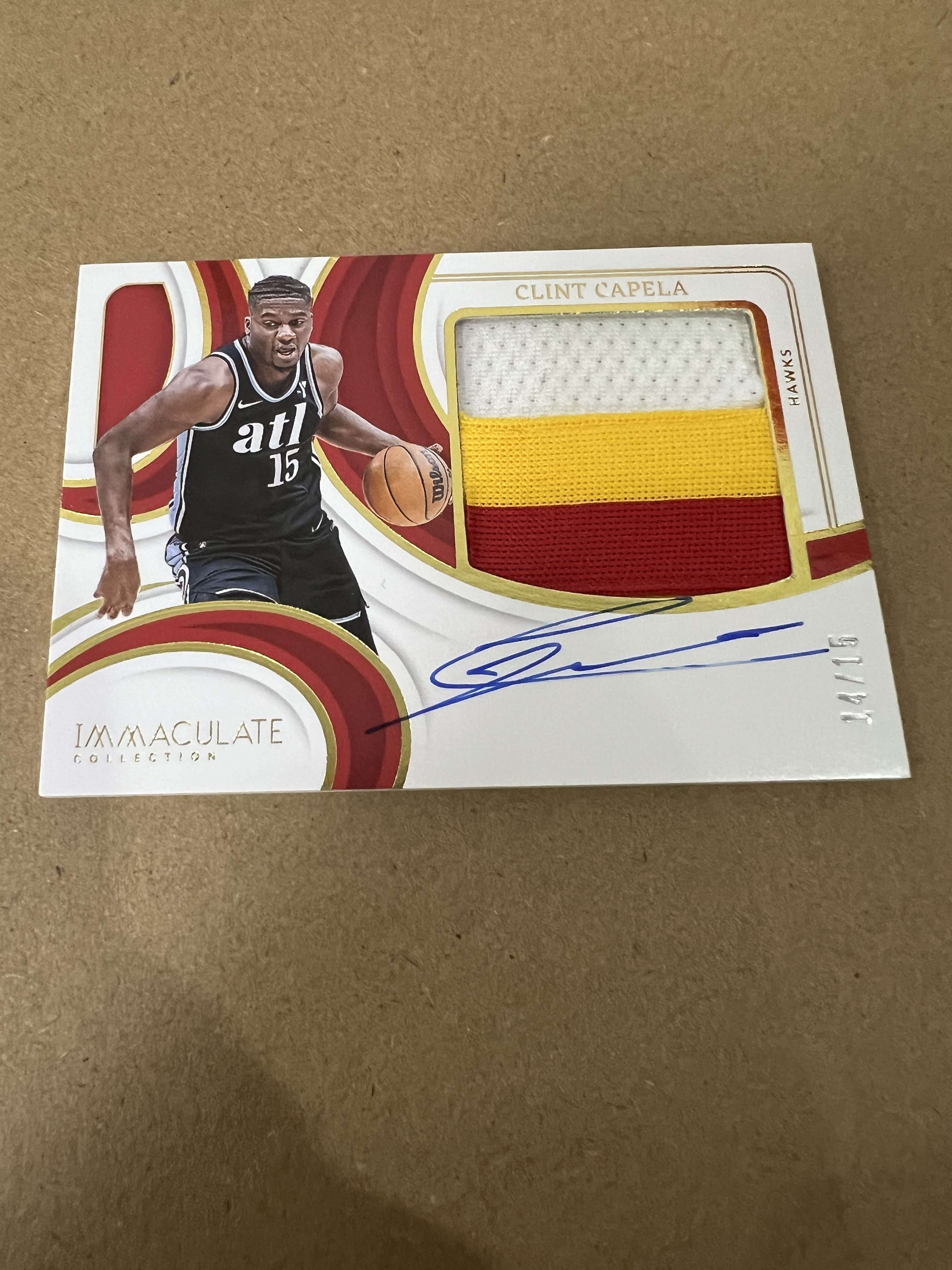 2023-24 Panini Immaculate Clint Capela imm 老鹰 克林特 卡佩拉 签字 卡签 14/15编 低编 三色物料 卡品如图 收藏必备 自由