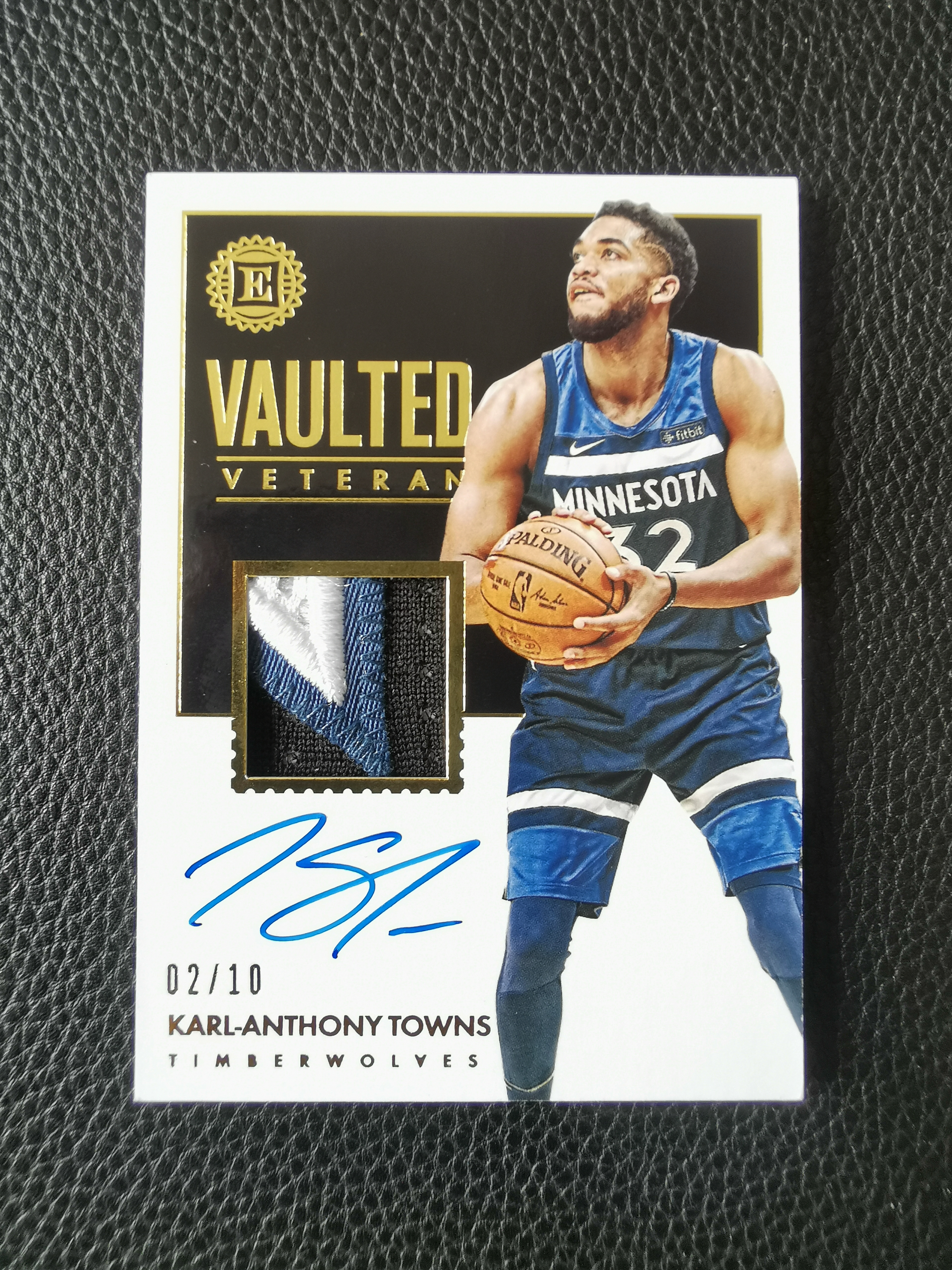 【金矿卡社】2017-18 encased 云端 森林狼 卡尔安东尼唐斯 karl Anthony towns 卡签签字 暴力三色落场球衣字母切割 patch 2/10编金版 轻印 双塔