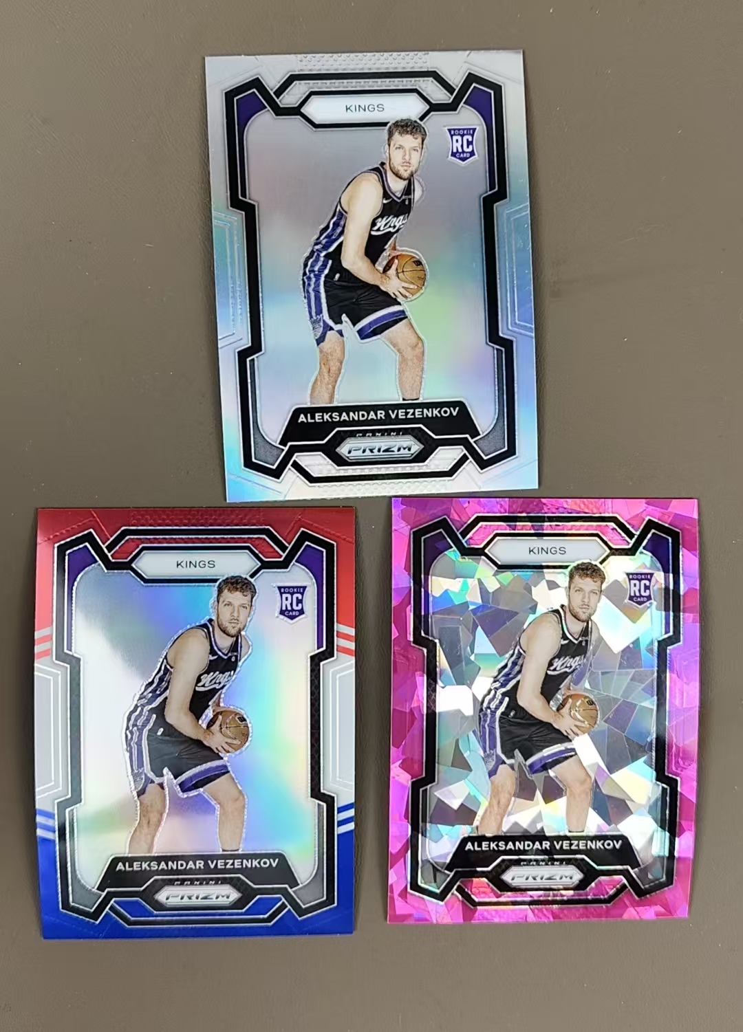2023-24 Panini Prizm ALEKSANDAR VEZENKOV RC 折射 国王 新秀 亚历山大 韦津科夫 3张打包 正银折 粉碎冰 三色折 卡品如图 (卡卡西088代卖)F9