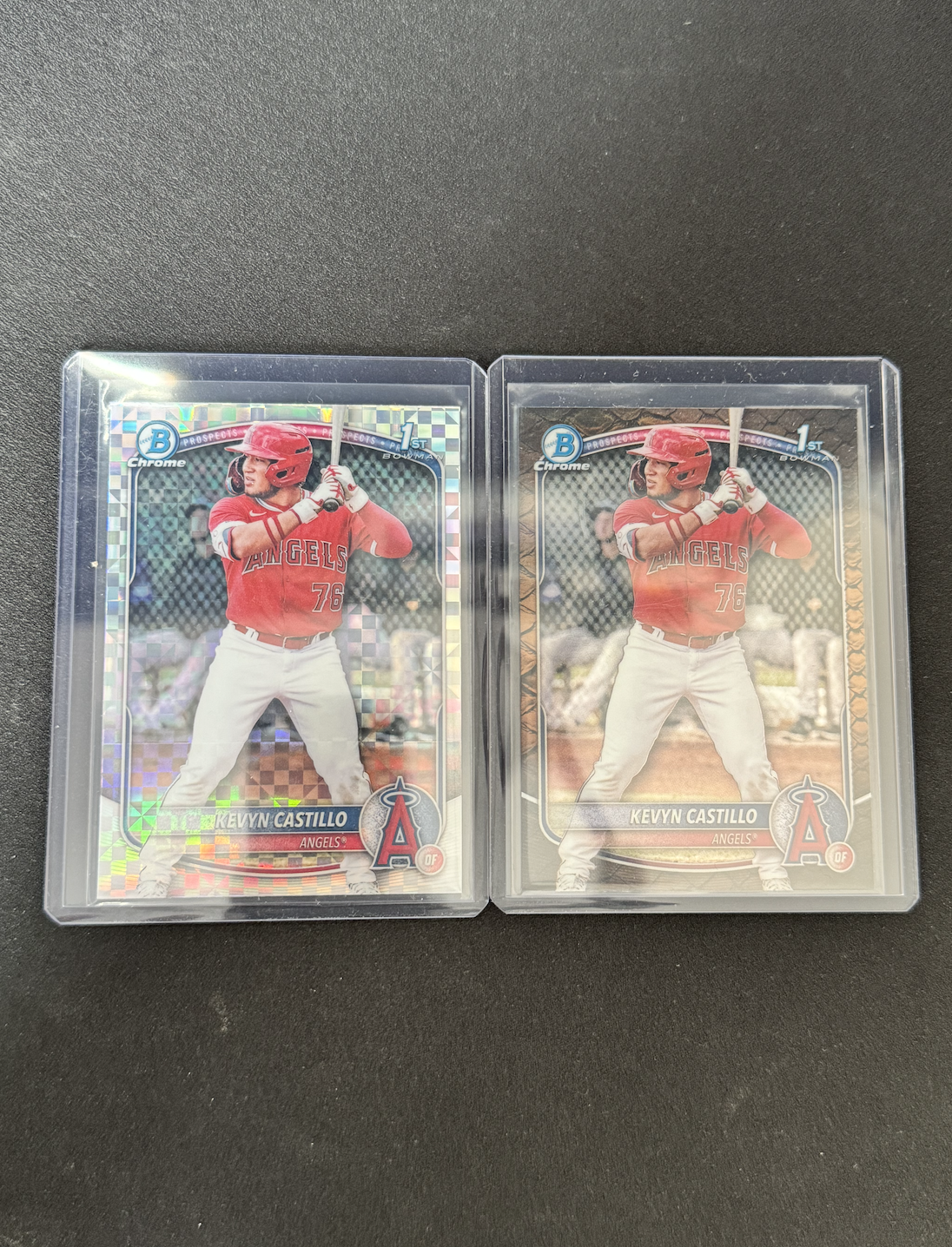 2025 Topps Bowman Kevyn Castillo chrome prospects 1st 格子折 铁锈折 2张lot 洛杉矶天使【零壹小卡】wn