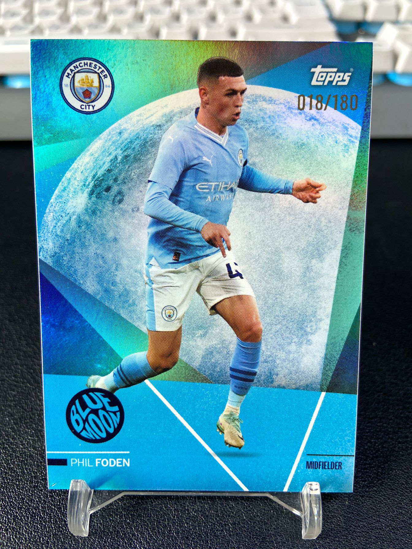 【浩行拍卖 截标预付82%】2024 topps Blue Moon phil foden 蓝月 曼城队盒 菲尔 福登 蓝折 折射 18/180编 专收必备 瑕疵看图「上方」0609E02恁