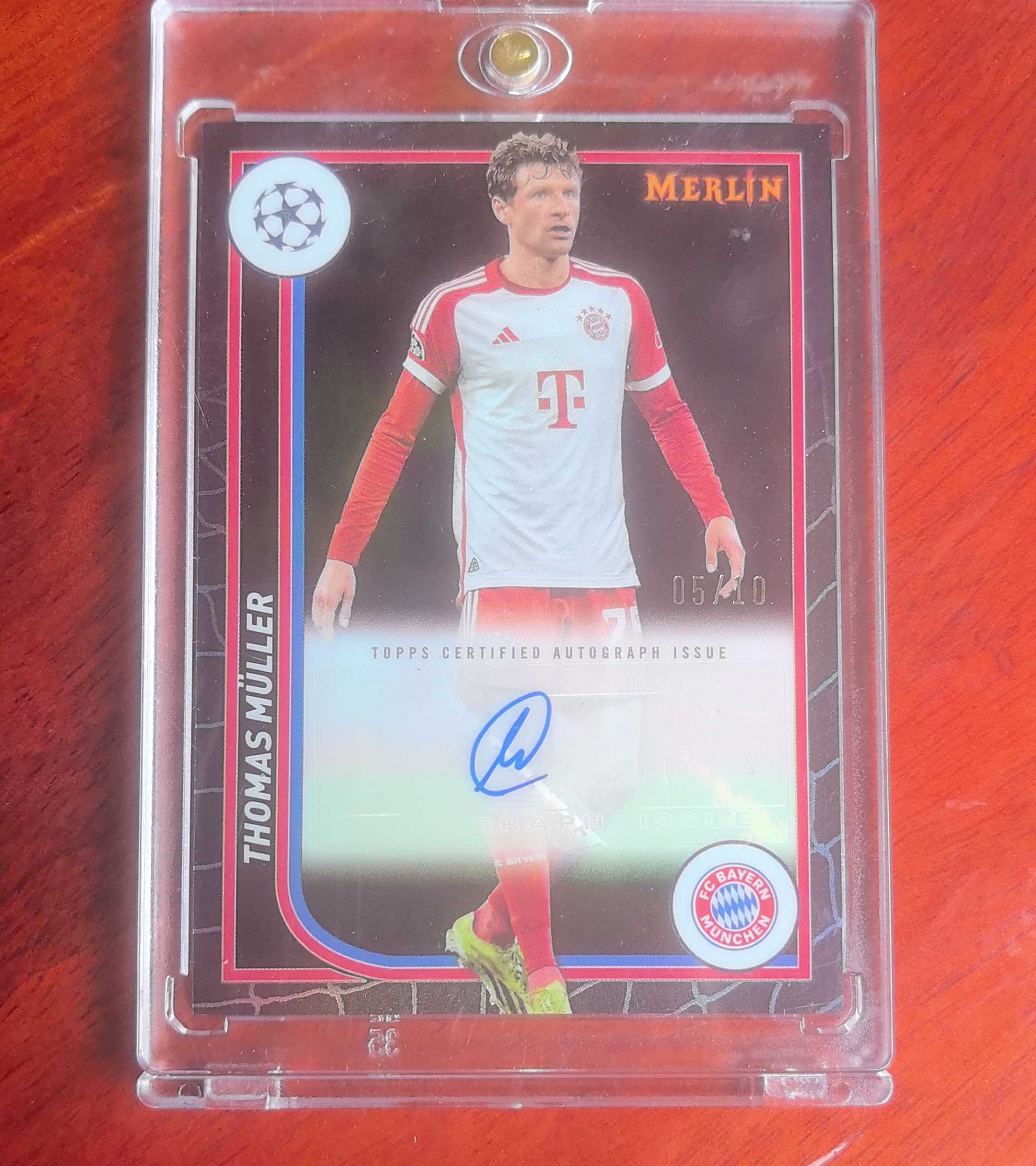 2024 Topps Merlin chrome Thomas Müller 欧冠 梅林 拜仁 德国 超级巨星 托马斯 穆勒 二娃 独占 SP 正黑折 5/10编 超低编 签字 稀有 完美墨迹 实卡精美