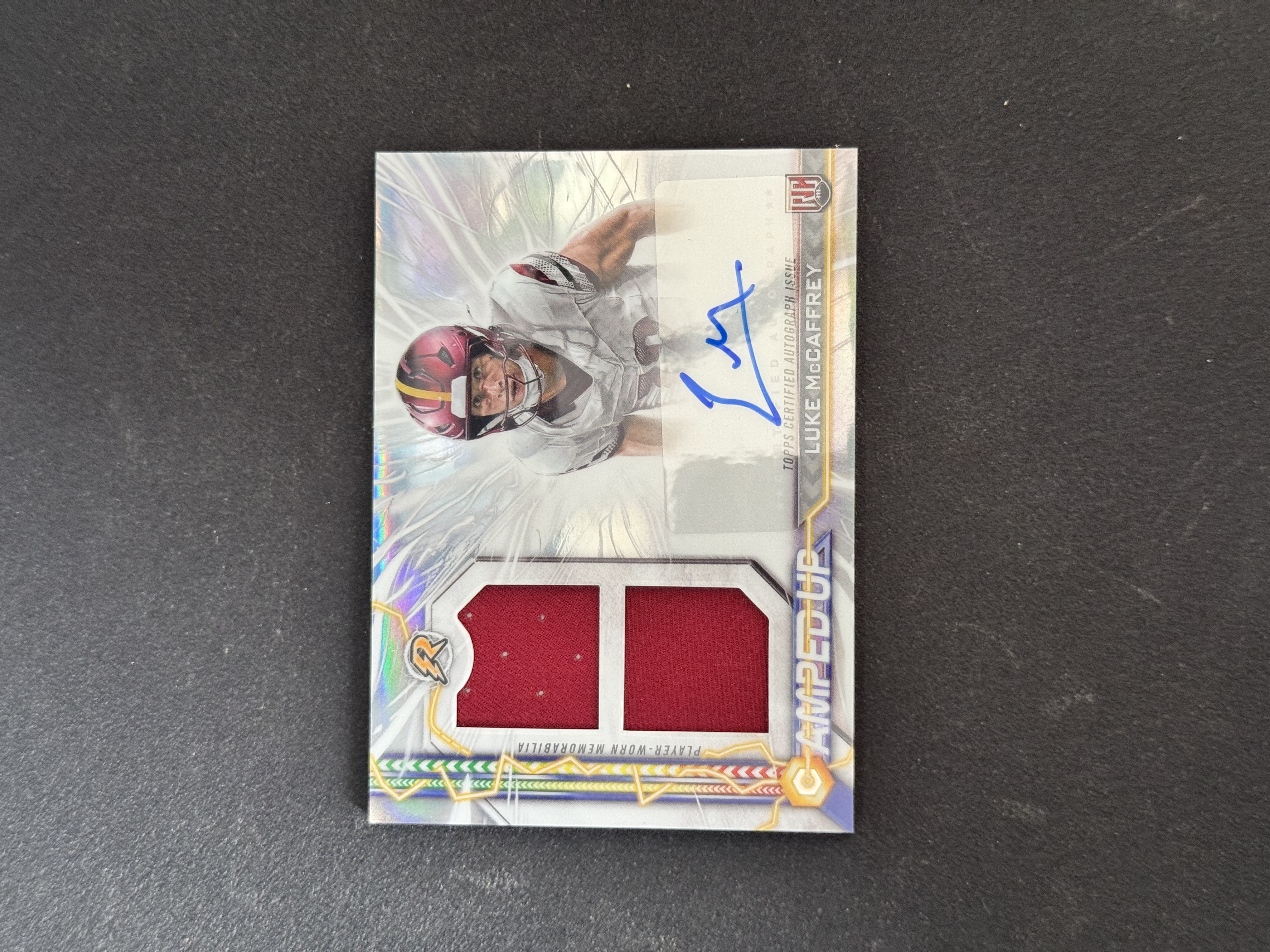 2025 Topps Resurgence Luke McCaffrey RC 卢克麦卡弗里 新秀 双窗亲穿球衣物料签字 银折【零壹小卡】wn