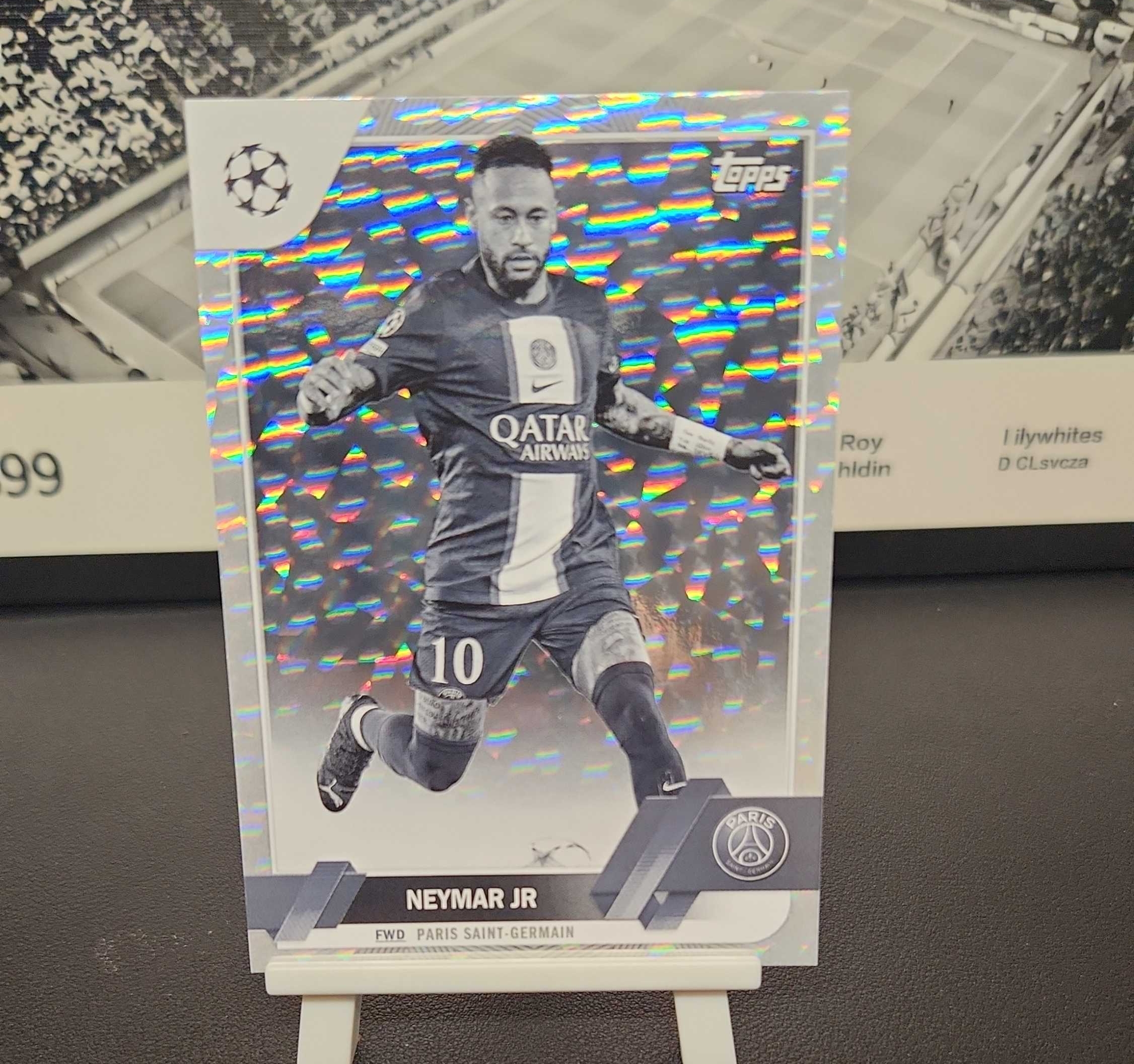 2023 Topps UEFA Champions League Neymar Jr. 【幻想代拍】 欧冠 内马尔 巴黎 035/150编 黑白碎冰 折射 实卡精美 收藏必备(奶茶)