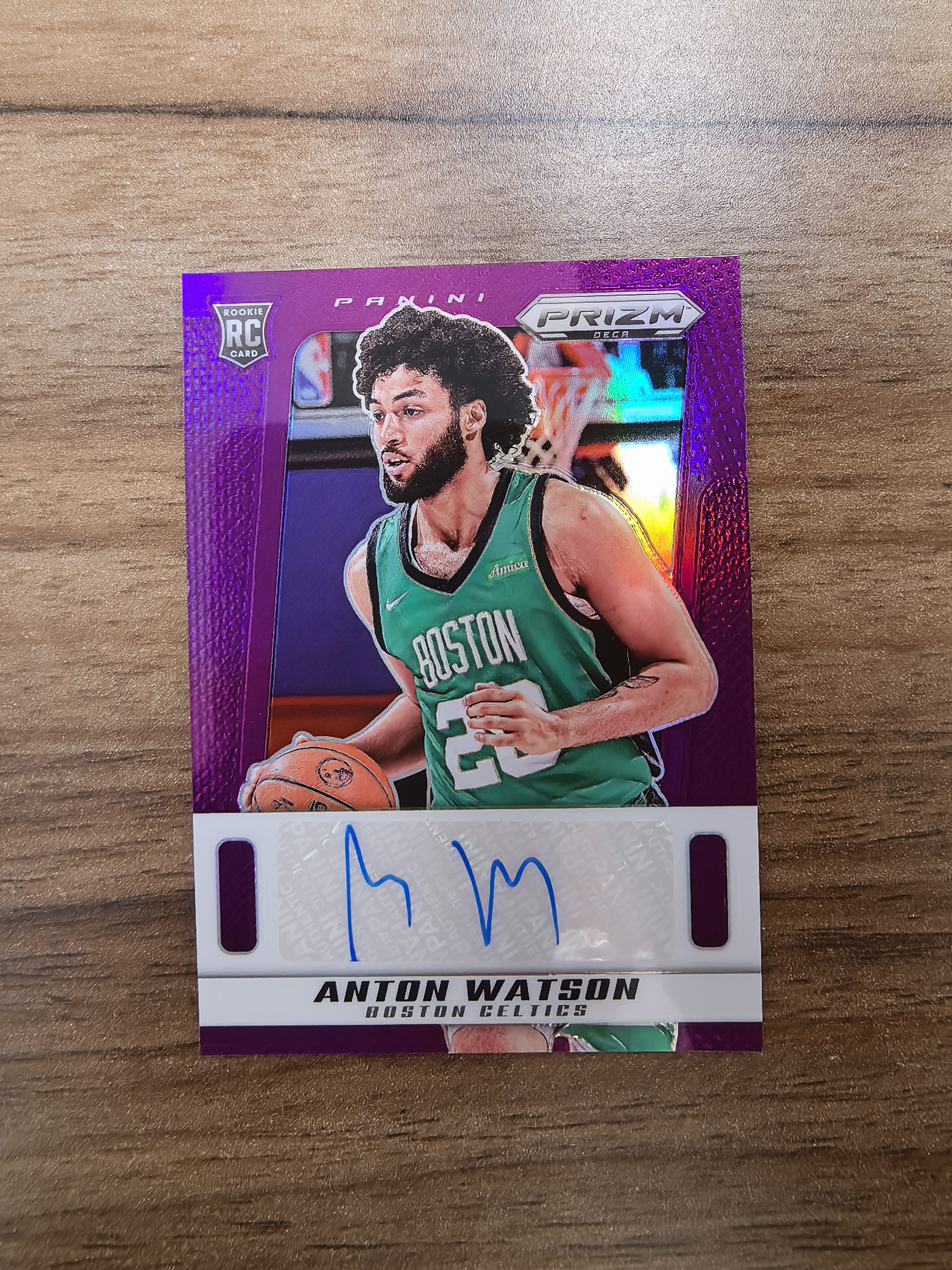 2024-25 Panini Prizm Anton Watson RC PZ复古 凯尔特人 安东沃特森 新秀 75编 签字 贴签 紫折 折射 微瑕 实卡精美 卡品如图 收藏必入 囧爷