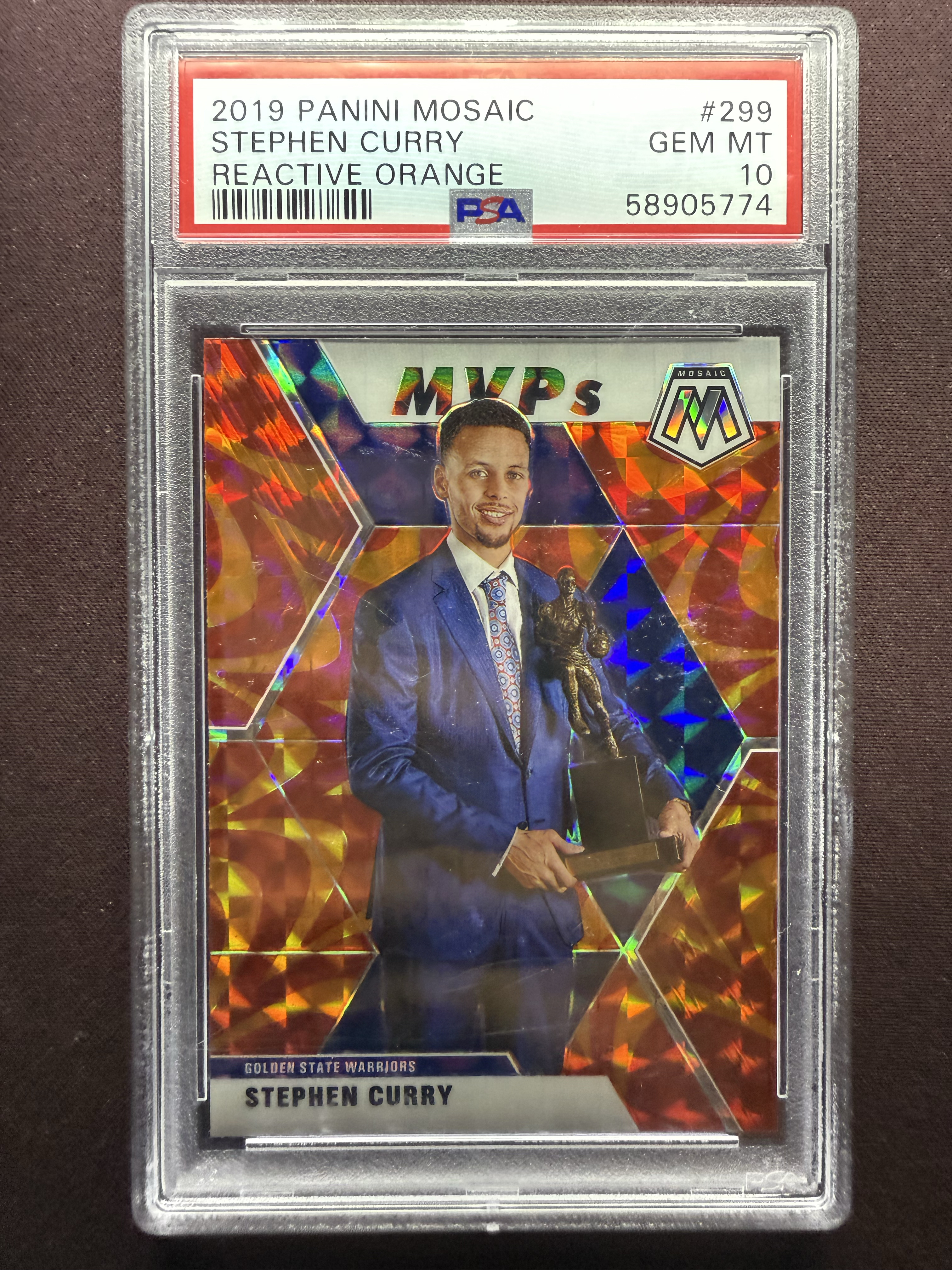 【小井代拍】2019-20 Panini Mosaic Stephen Curry 斯蒂芬 库里 马赛克 mvp 捧杯 勇士 橙爆炸折 爆炸折 凑套必备 psa10 seven