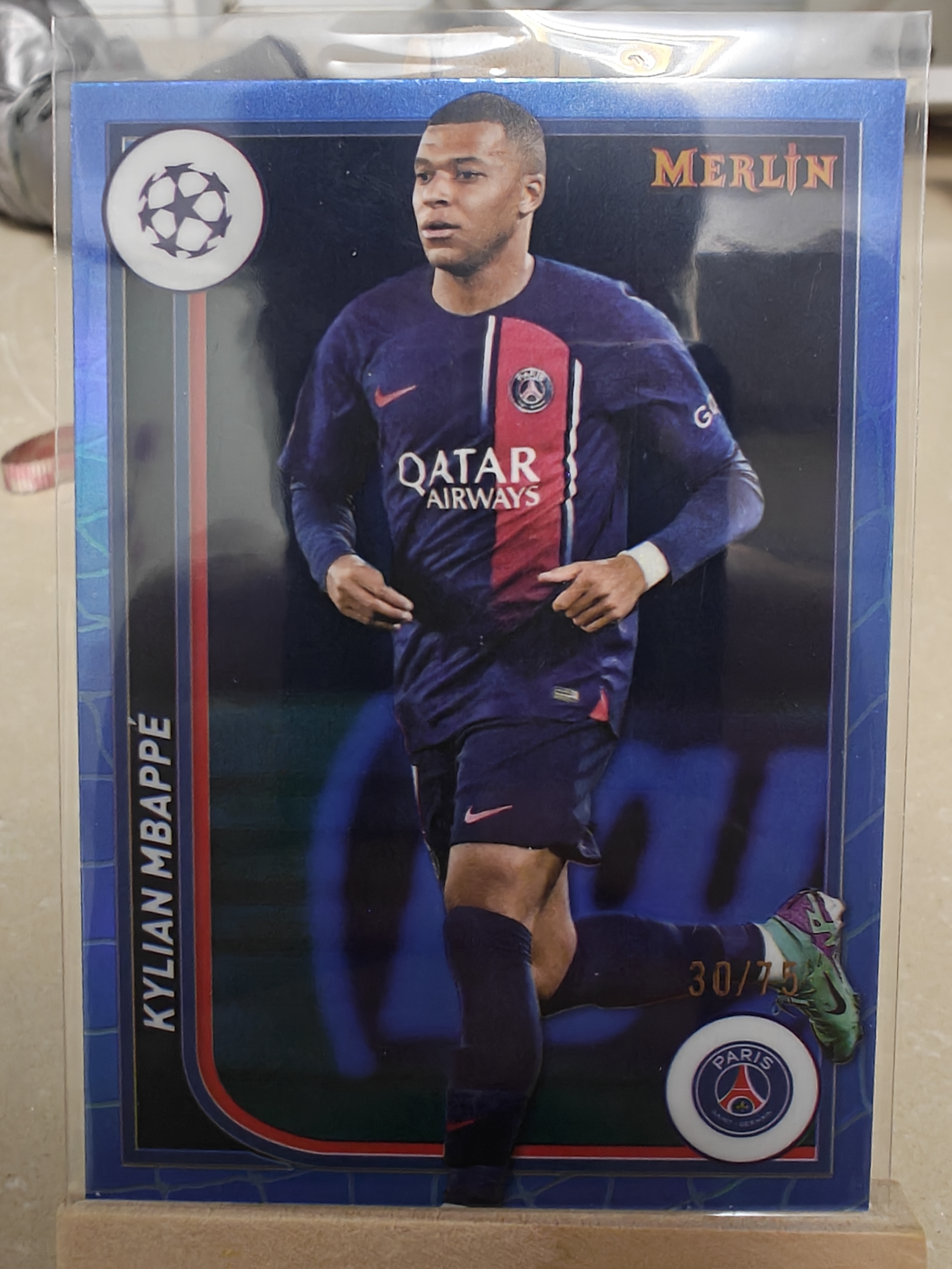 2024 Topps MERLIN Kylian Mbappe 欧冠 梅林 法国 大巴黎 皇马 世界杯决赛帽子戏法 姆巴佩 30/75编 蓝平行 收藏必备