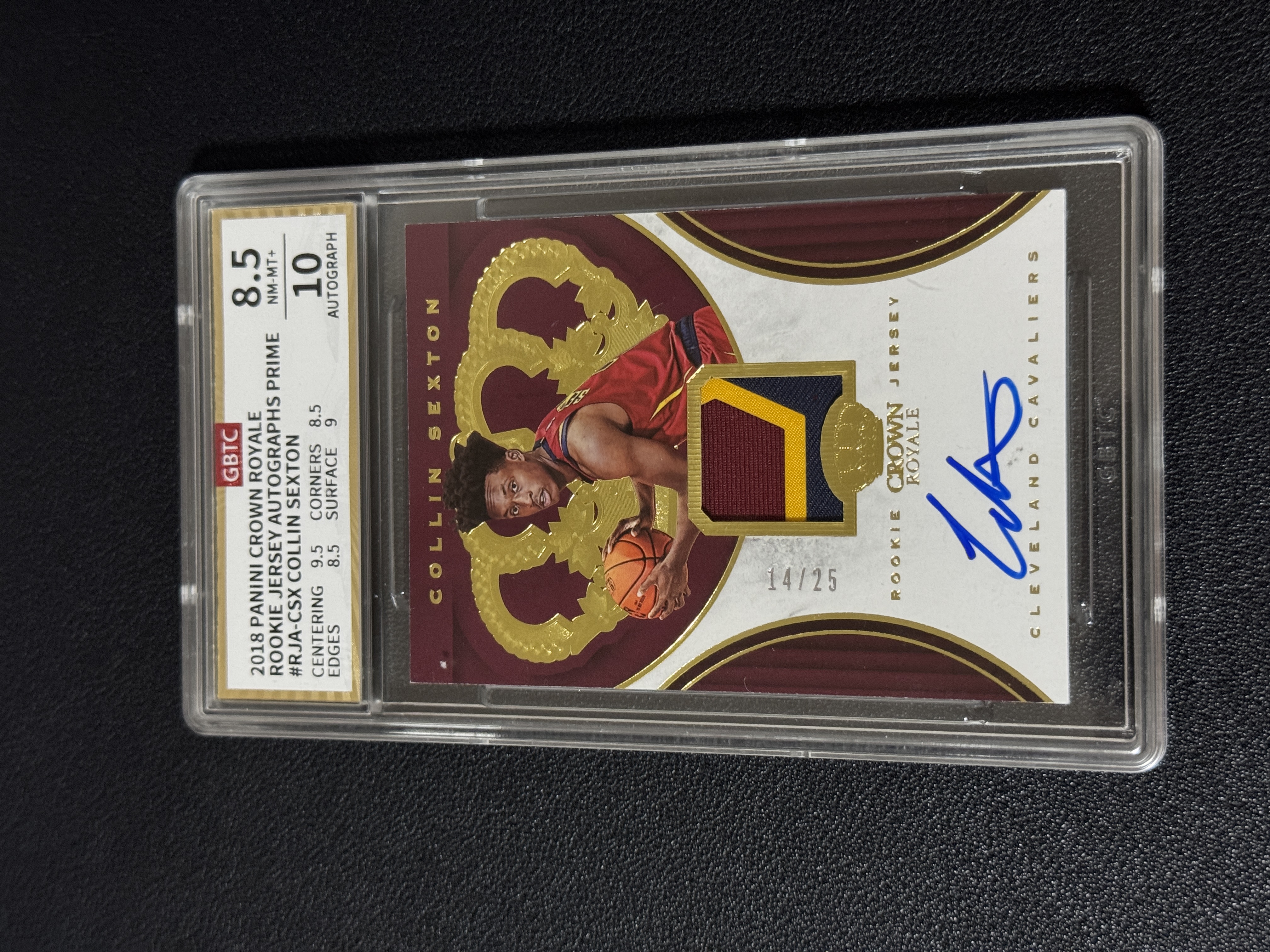 2018-19 Panini Crown Royale Collin Sexton 皇冠 克林 塞克斯顿 RC 新秀 PATCH 签字 /25 RPA 暴力切割 公博8.5 签字 10 【PC球星卡】