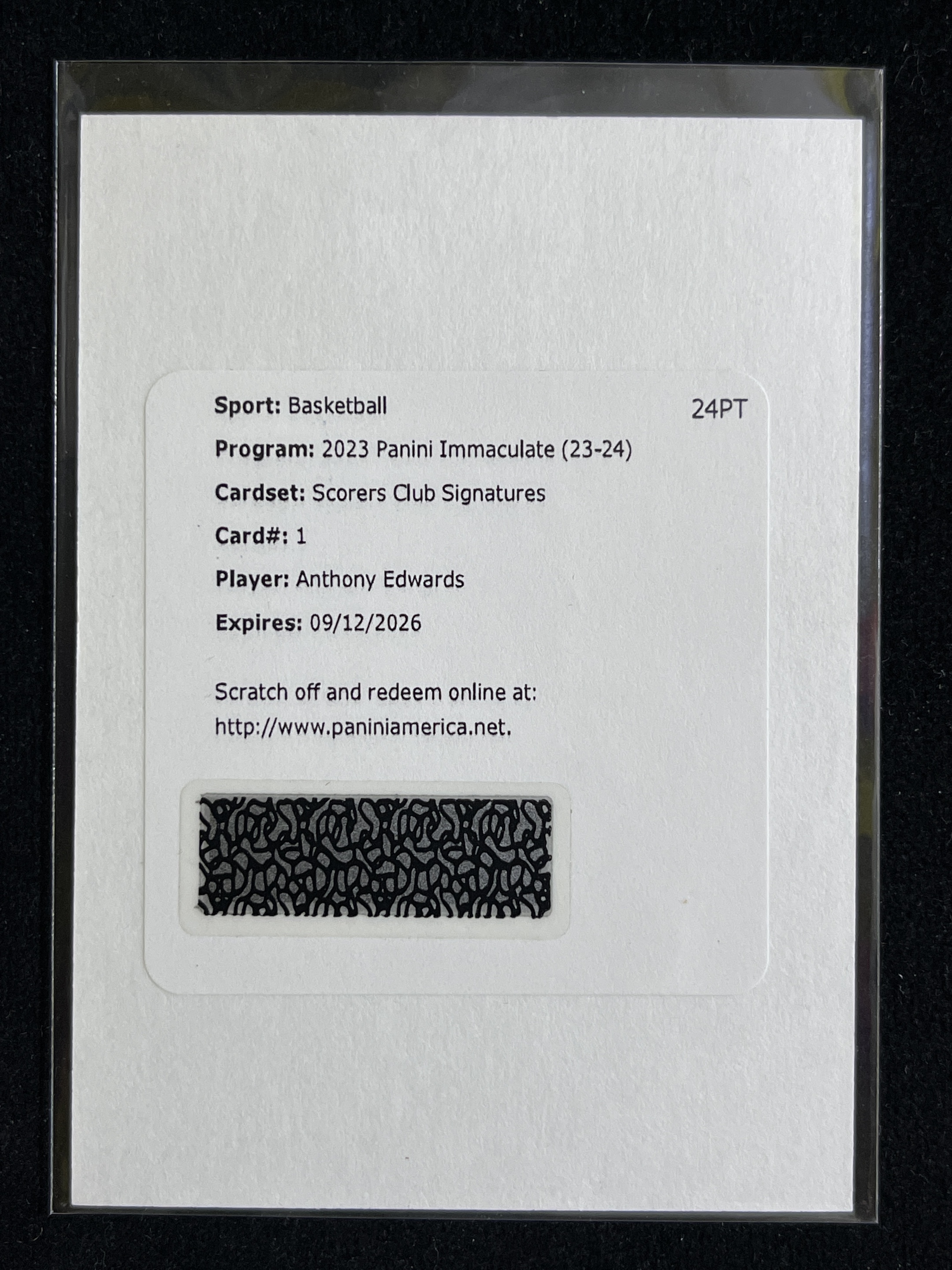 【Lucky幸运壹编壹代拍-CGY】2023-24 Panini Immaculate 森林狼 华子 安东尼 爱德华兹 Anthony Edwards 49编 得分手俱乐部 签字 交换板