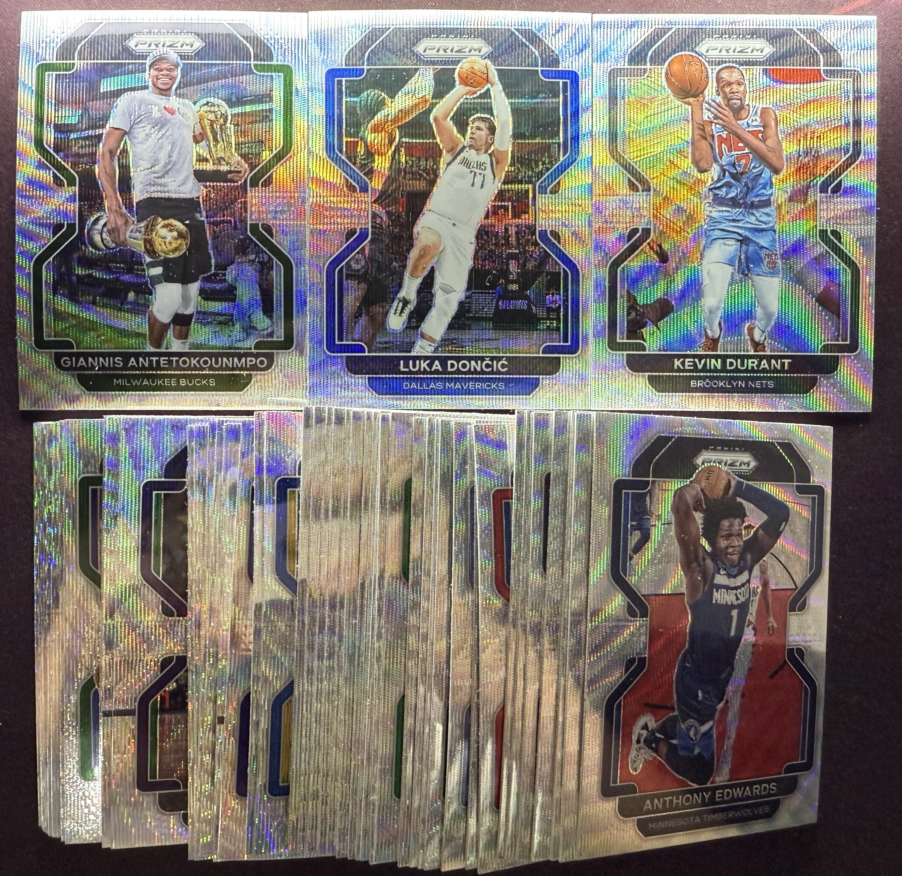 【小井代拍】2021-22 Panini Prizm pz 银波纹 折射 lot 工厂盒 字母哥捧杯 东契奇 杜兰特 爱德华兹 sga 带队 巨星好人非新秀 全银波纹 共47张 凑套必备 seven