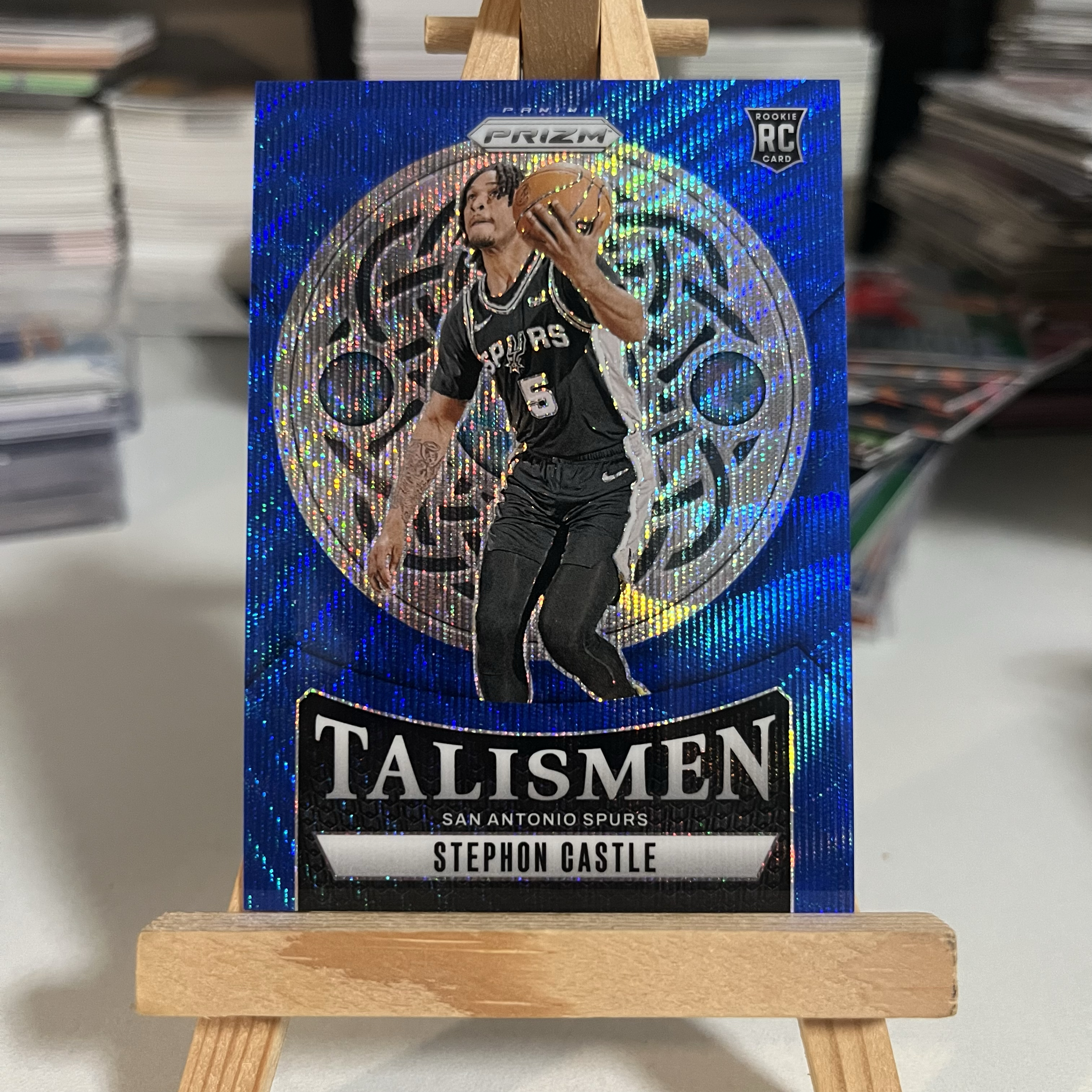 2024-25 Panini Prizm Stephon Castle 【0手续费代卖】史蒂芬 卡斯尔 马刺 RC 新秀 175编 蓝波纹 折射 护身符特卡 专收必备 凑套收藏 可累计#篮球卡kk52