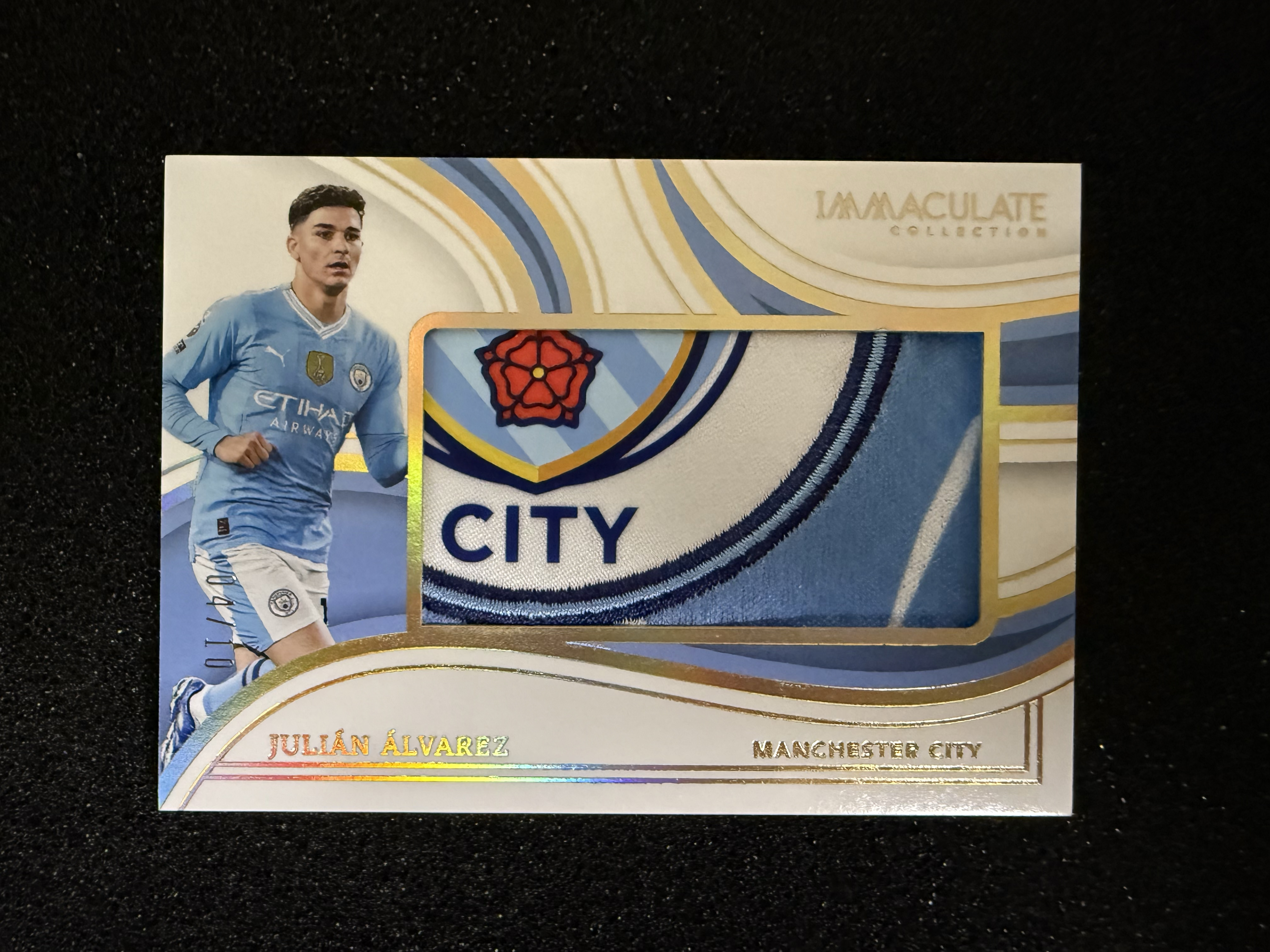 2023-24 Panini Immaculate Julián Álvarez 阿尔瓦雷斯 小蜘蛛 4/10编 暴力切割 Patch 物料 衣料 曼城 对标 队徽 蓝队 曼切斯特 阿根廷 梅西队友