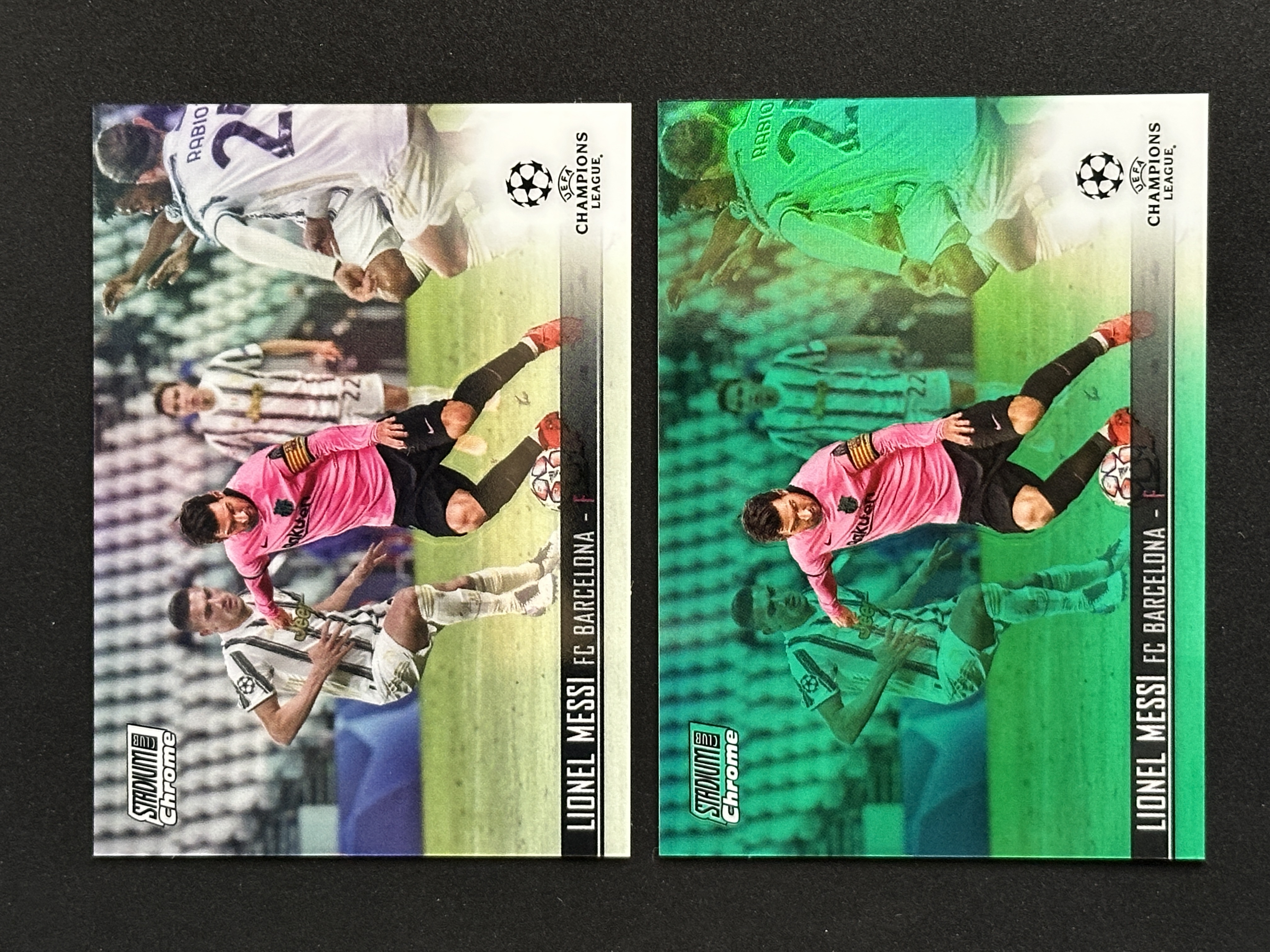2020-21 Topps Stadium Club Lionel Messi 欧冠竞技场 巴塞罗那 巴萨 阿根廷 里奥 梅西 银折 绿折 49/99编 2张打包 选图超帅 微瑕 卡品如图