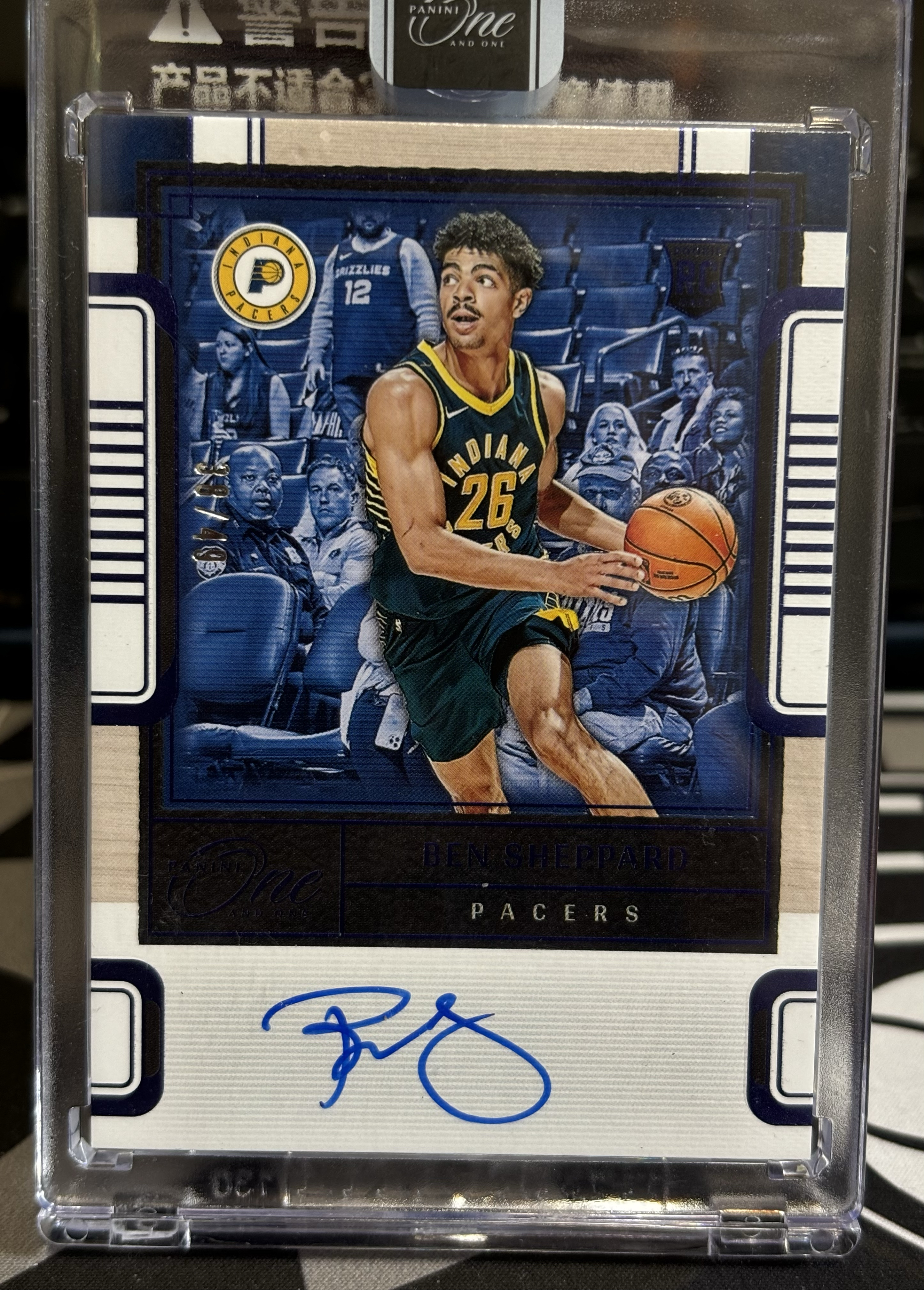 2023-24 Panini One and One Ben Sheppard RC One 步行者 本 谢泼德 新秀RC 49编 卡签 38/49编 签字 帕尼尼原封砖 哈利伯顿队友 不保卡品