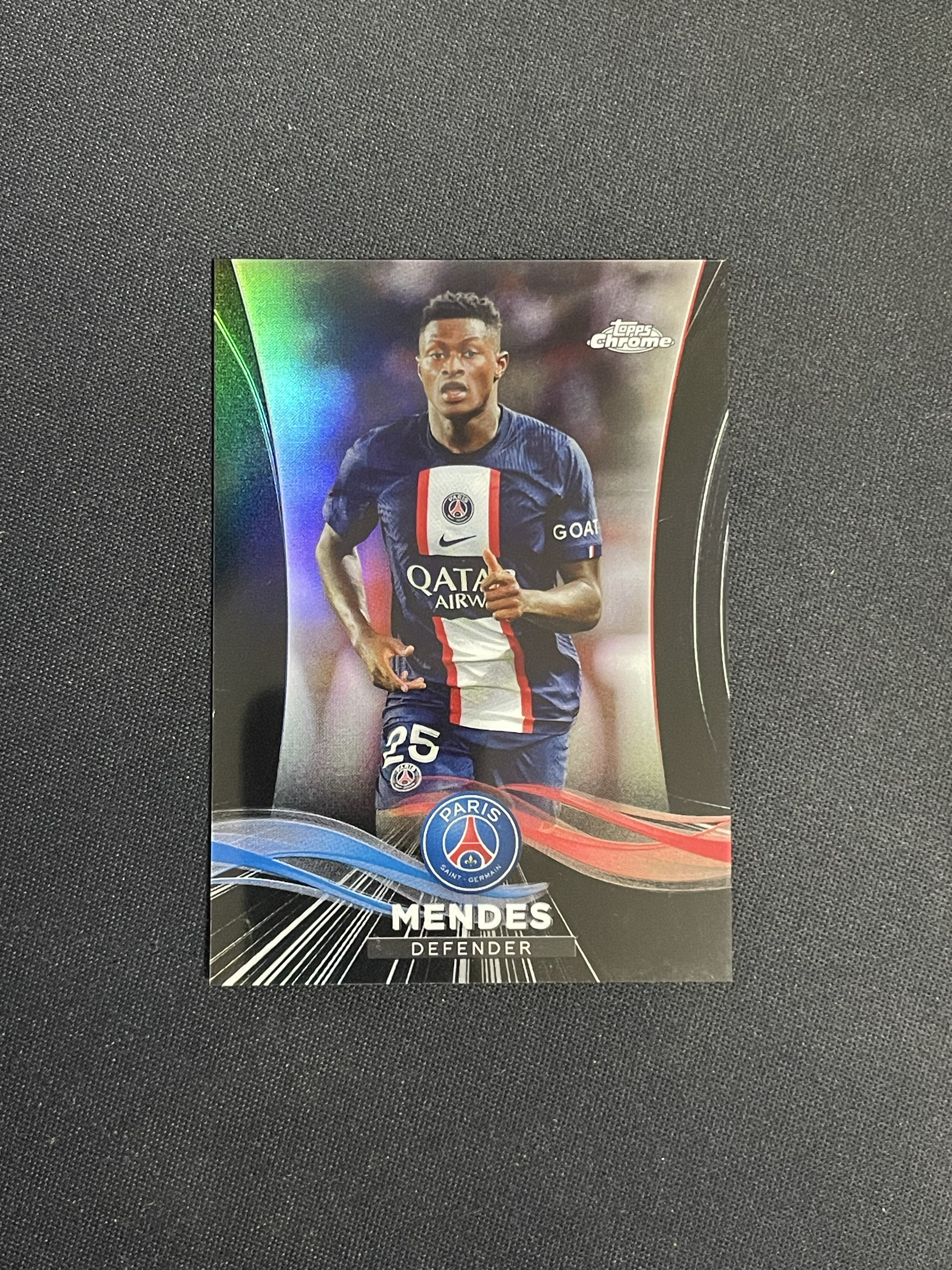2023 Topps PSG Nuno Mendes 巴黎圣日耳曼chrome 努诺 门德斯 /25编 黑折 葡萄牙 欧冠冠军 欧国联冠军 世一左边后卫 杜埃 C罗队友 卡品细节如图 0手续费代拍