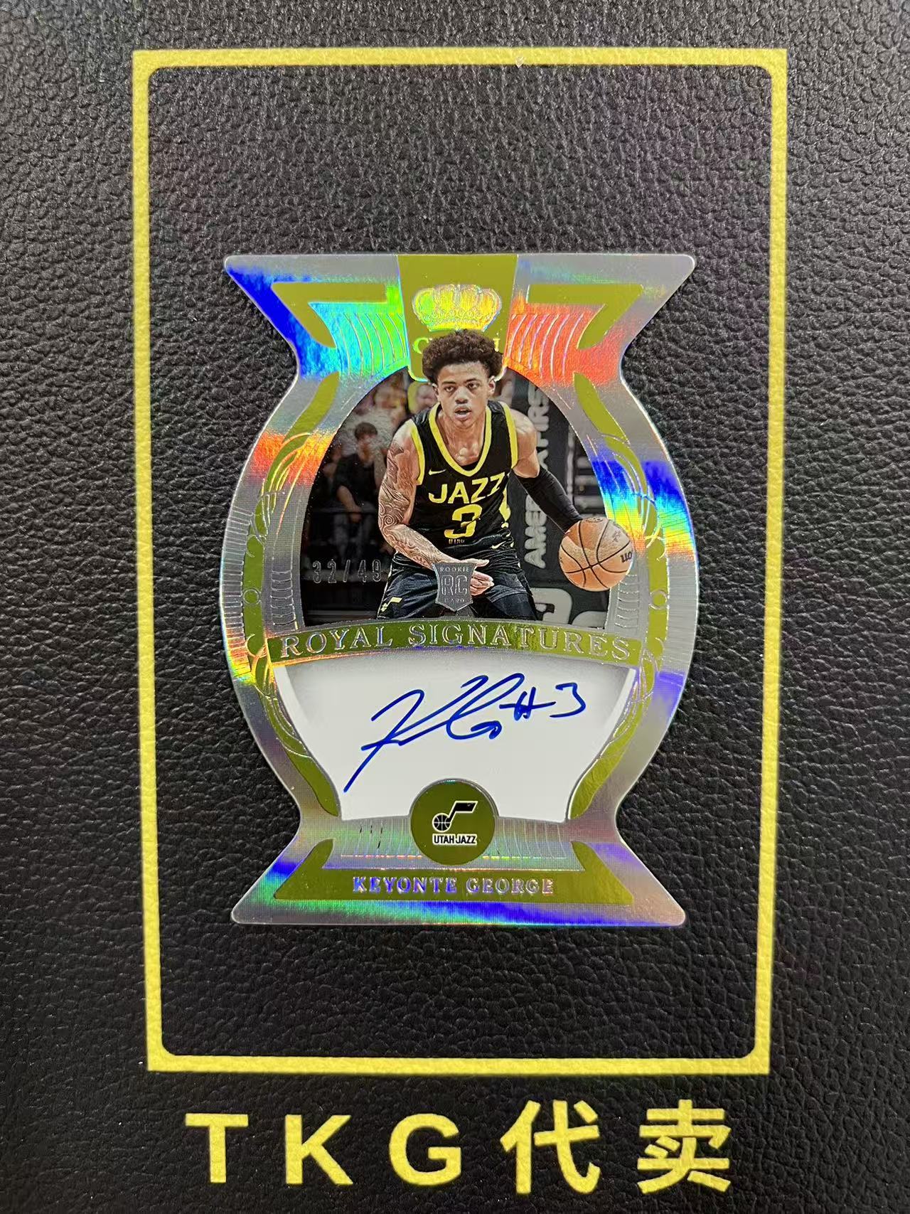 2023-24 Panini Crown Royale Keyonte George RC 【TKG代卖】小小钶 基昂特 乔治 猪猪侠 新秀 爵士 皇冠系列 异形 32/49编 卡签 签字 瑕疵如图