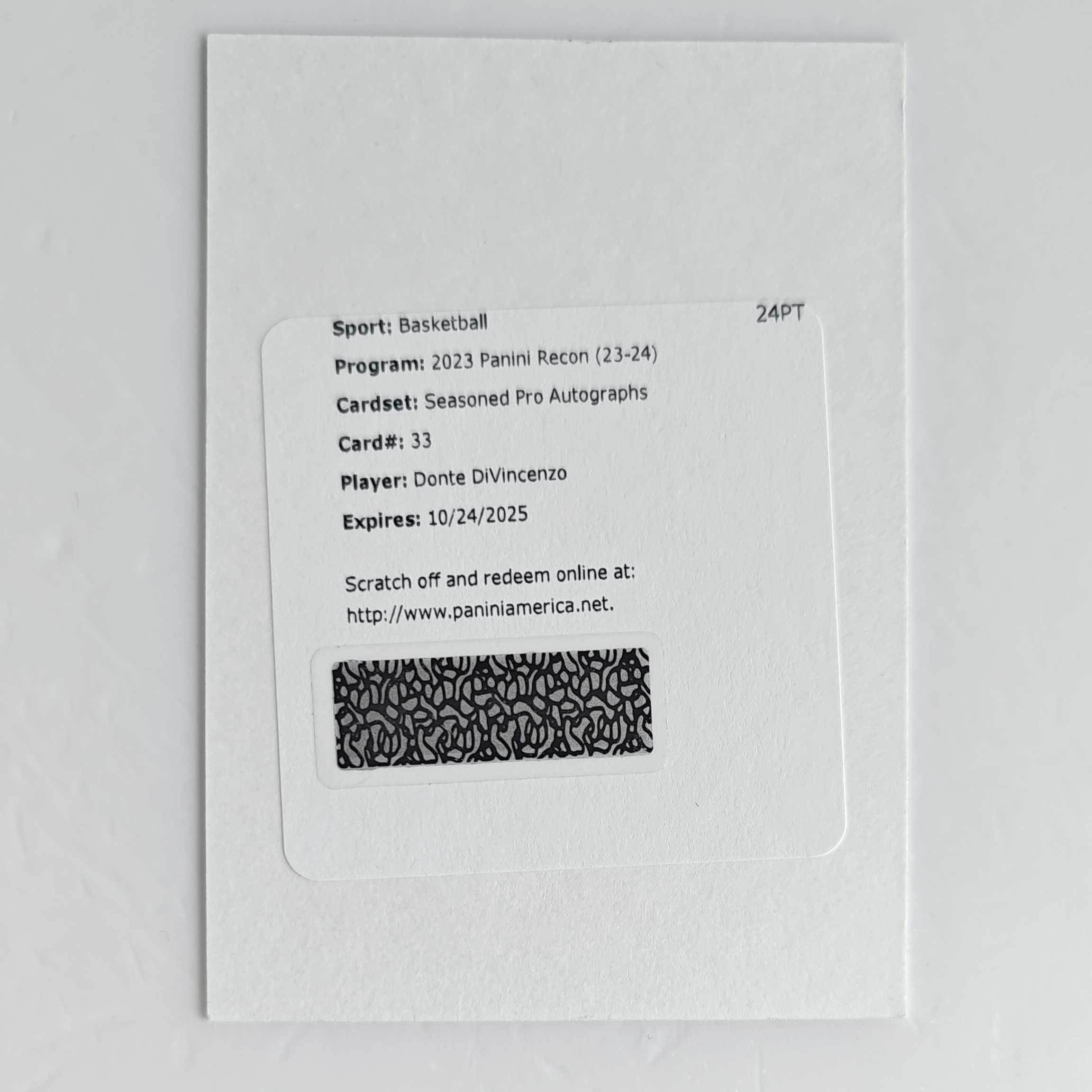 2023-24 Panini Recon Donte DiVincenzo 【鼎盛拍卖】丹特 迪文森佐 雄鹿 签字 Seasoned Pro签 交换板 只发板不发码